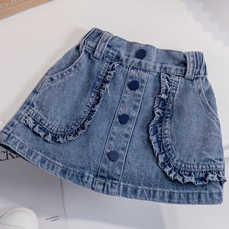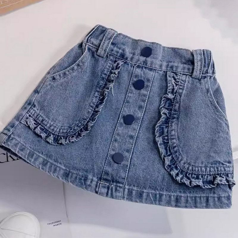 Girls Fashion Ruffled Denim Skirt