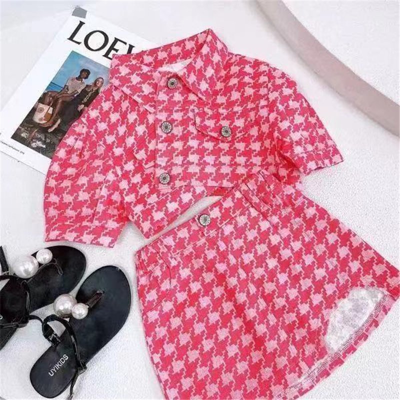 Girls Fashion Short-sleeves Plaid Coat And Skirt Set