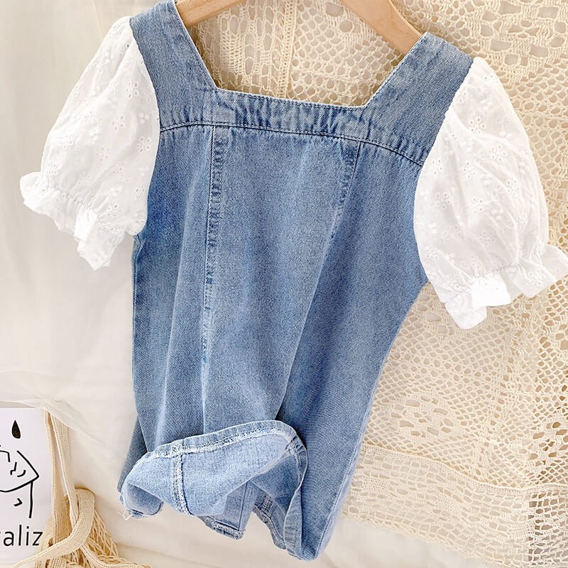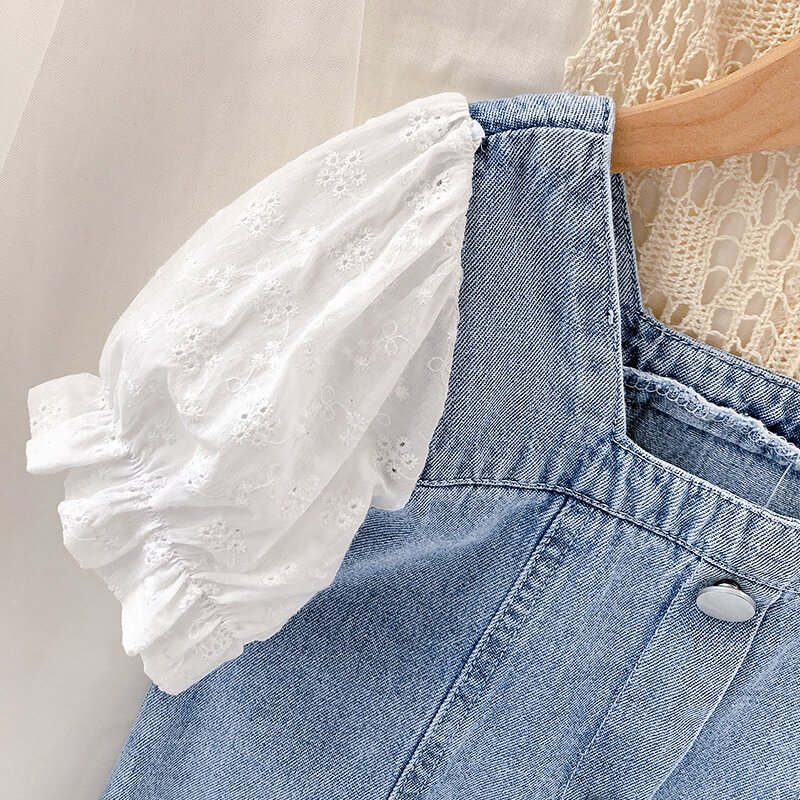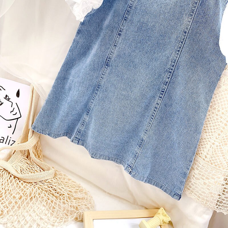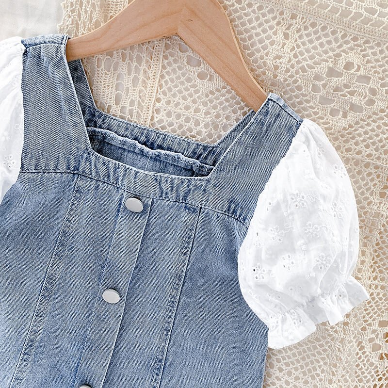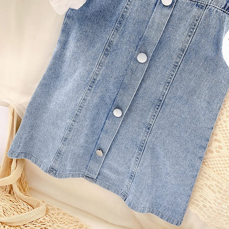 Girls Fashion Single-breasted Design Denim Spliced Dress