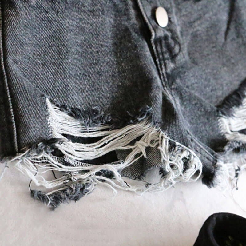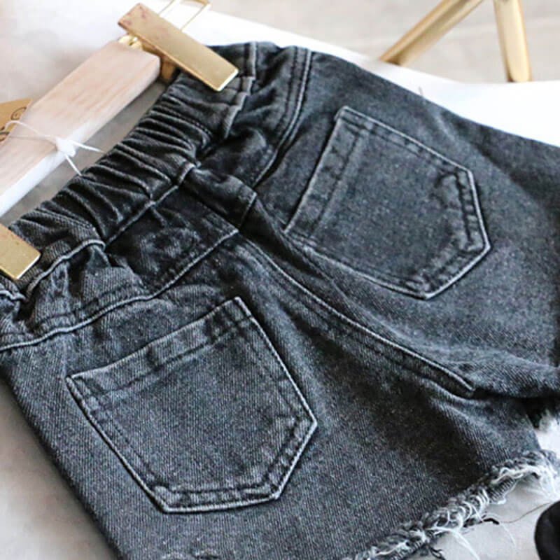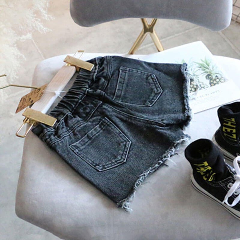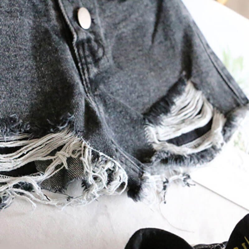 Girls Fashion Single-breasted Hole-design Jean Shorts