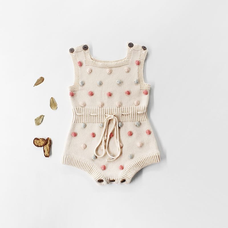 Girls Fashion Sleeveless Pompon Design Romper
