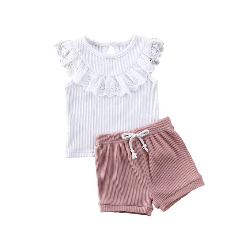 Girls Fashion Sleeveless Ruffled Tops And Shorts Set