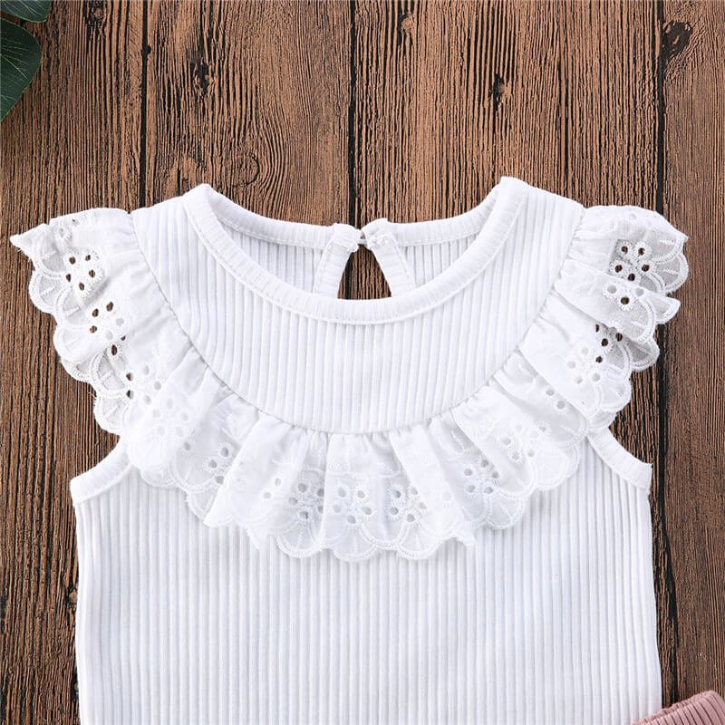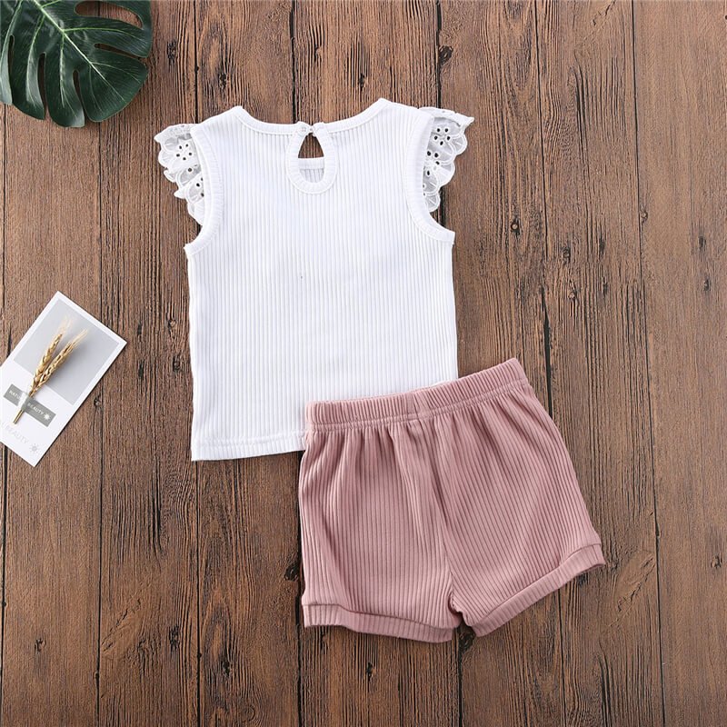 Girls Fashion Sleeveless Ruffled Tops And Shorts Set