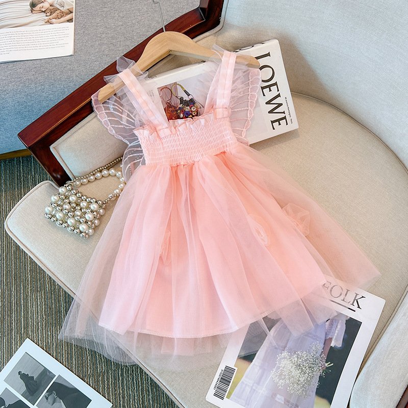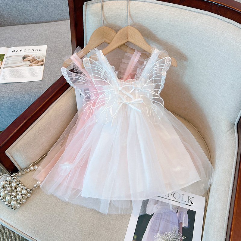 Girls Fashion Solid Color Butterfly Mesh Dress