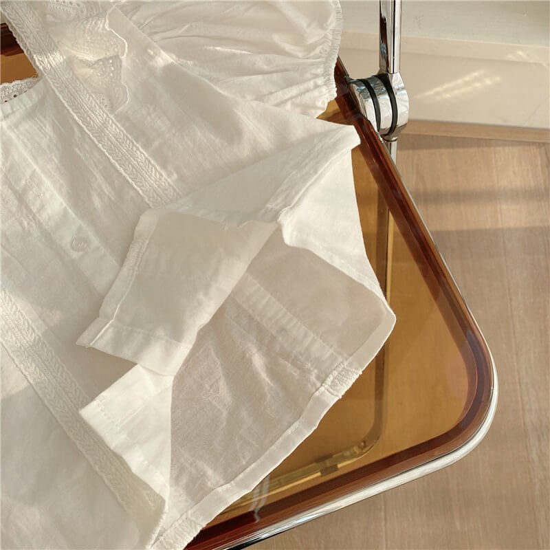 Girls Fashion Solid Color Embroidery Hollow Out Design Blouses
