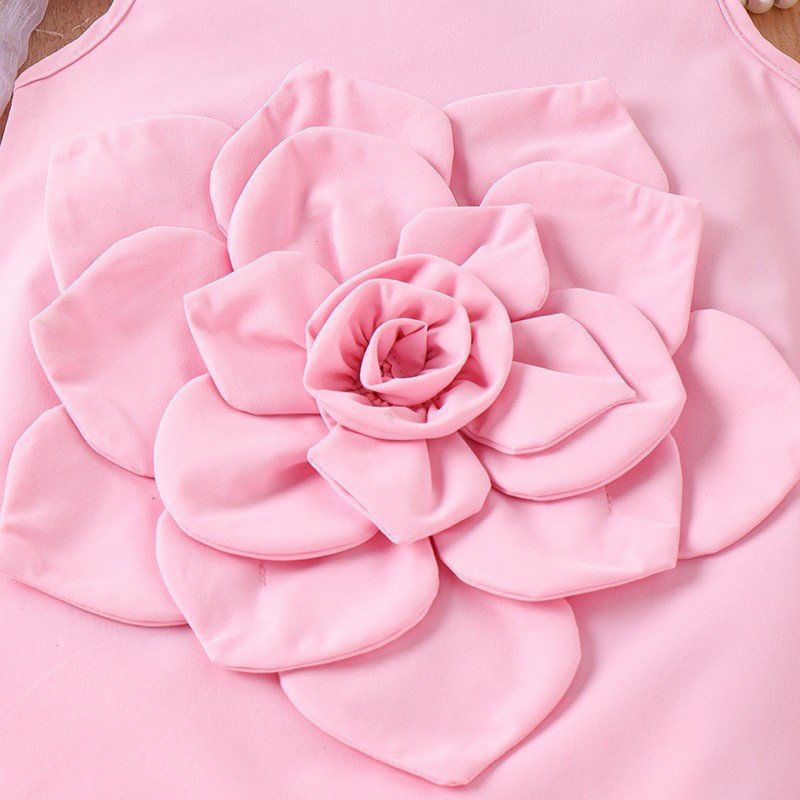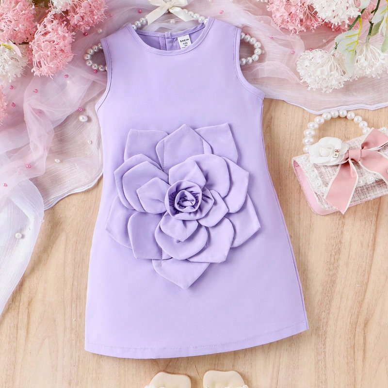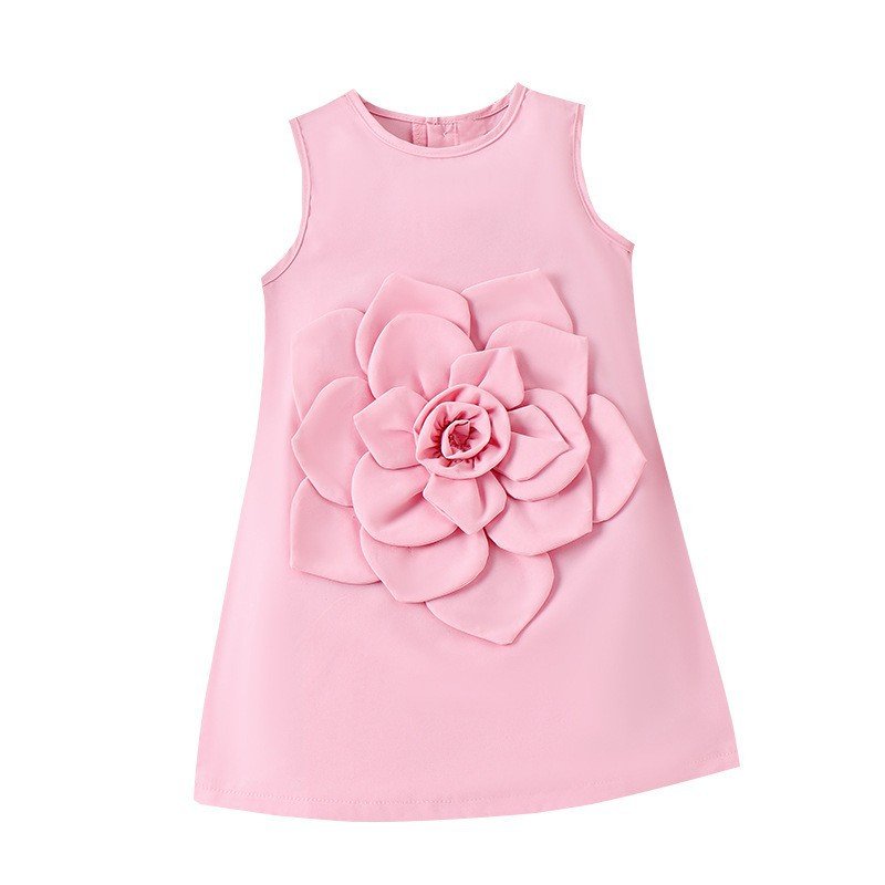 Girls Fashion Solid Color Floral Sleeveless Dress