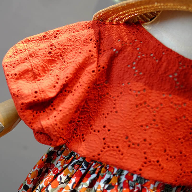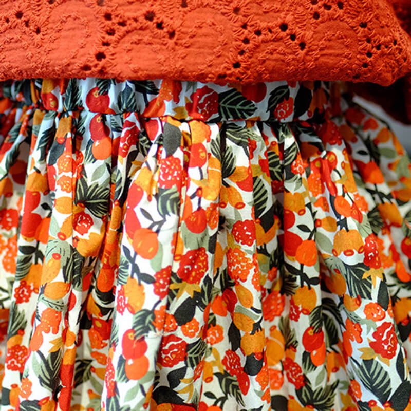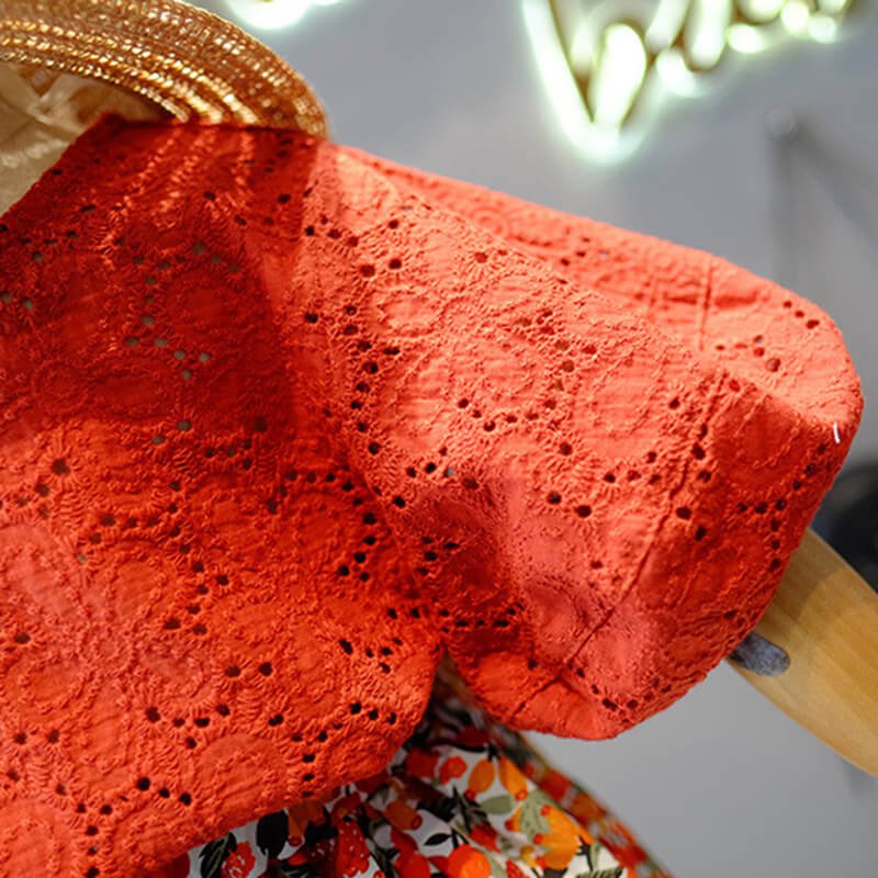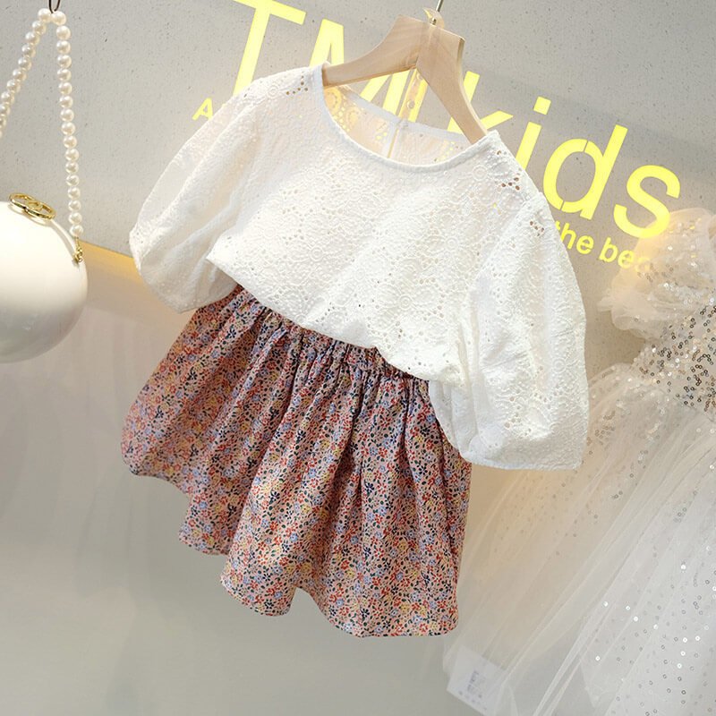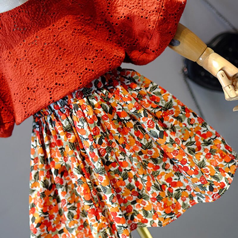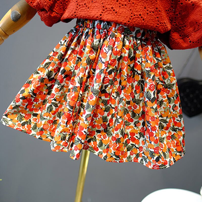 Girls Fashion Solid Color Hollow Out Tops And Floral Skirt Set