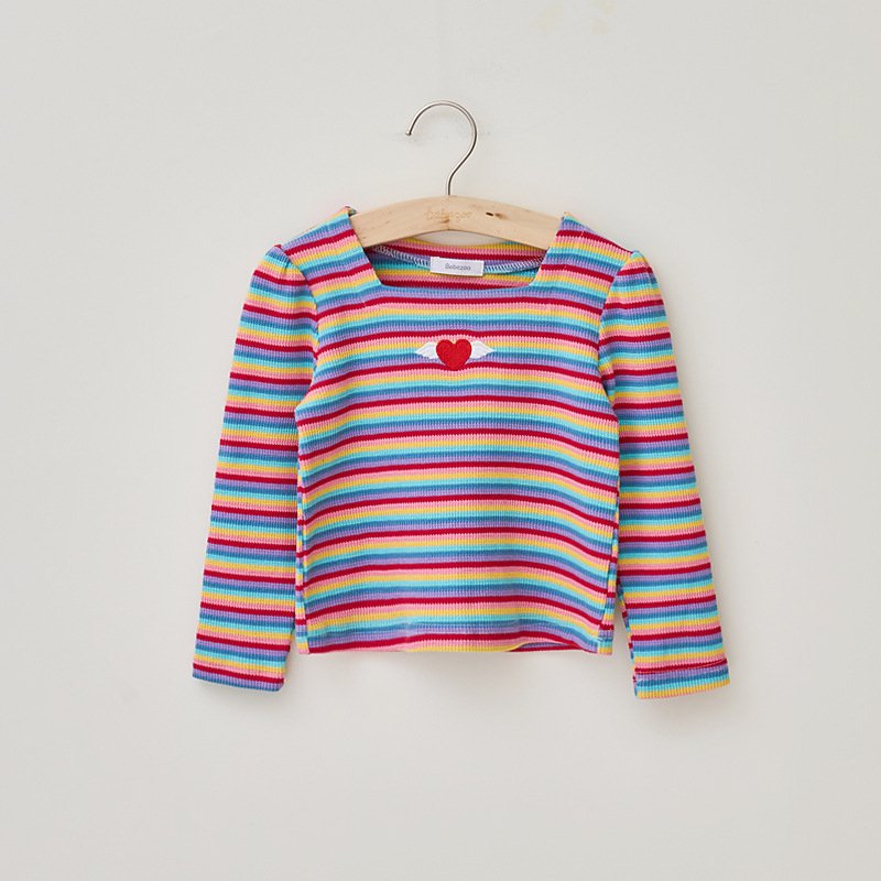 Girls Fashion Square Collar Rainbow Stripe Embroidered Top
