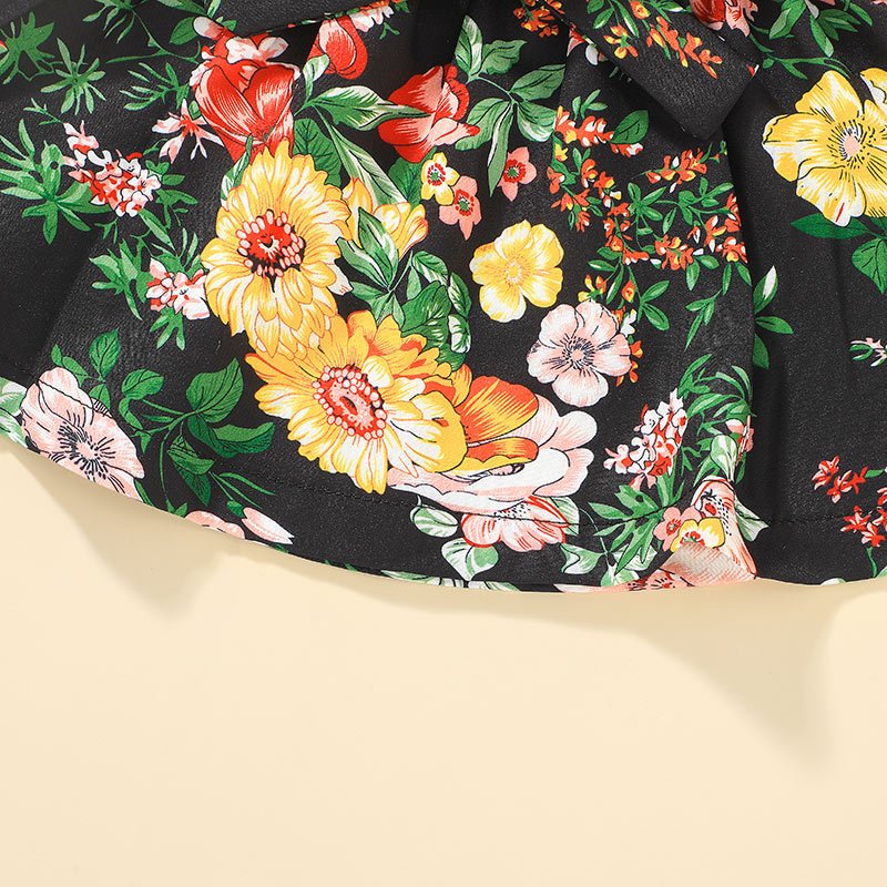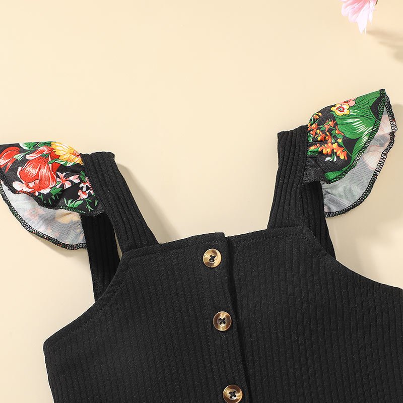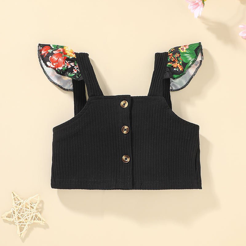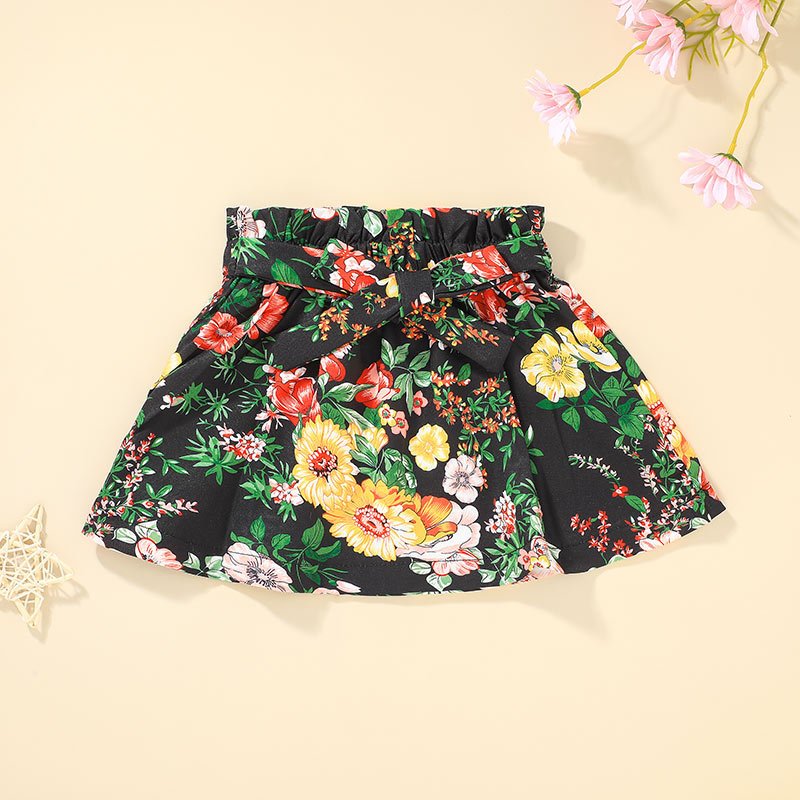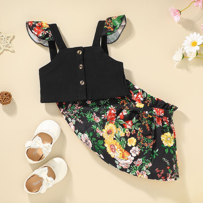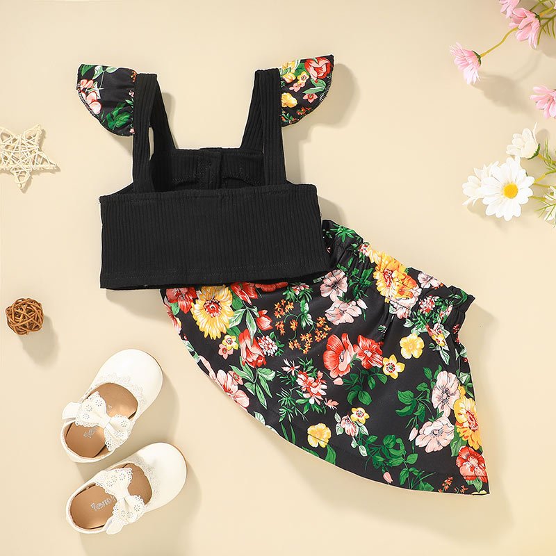 Girls Fashion Stringy Selvedge Sleeveless Tops And Flower Pattern Skirt Set