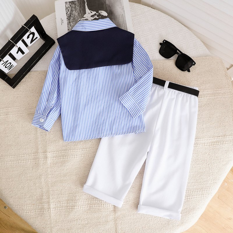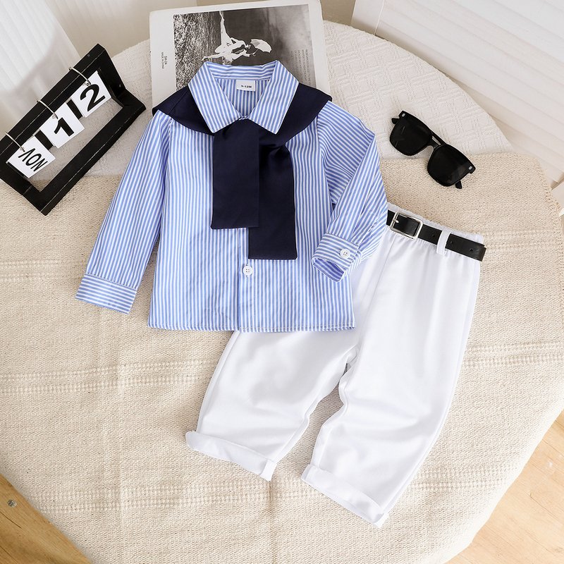 Girls Fashion Stripe Long Sleeve Shirt And Pants Two-Piece Set