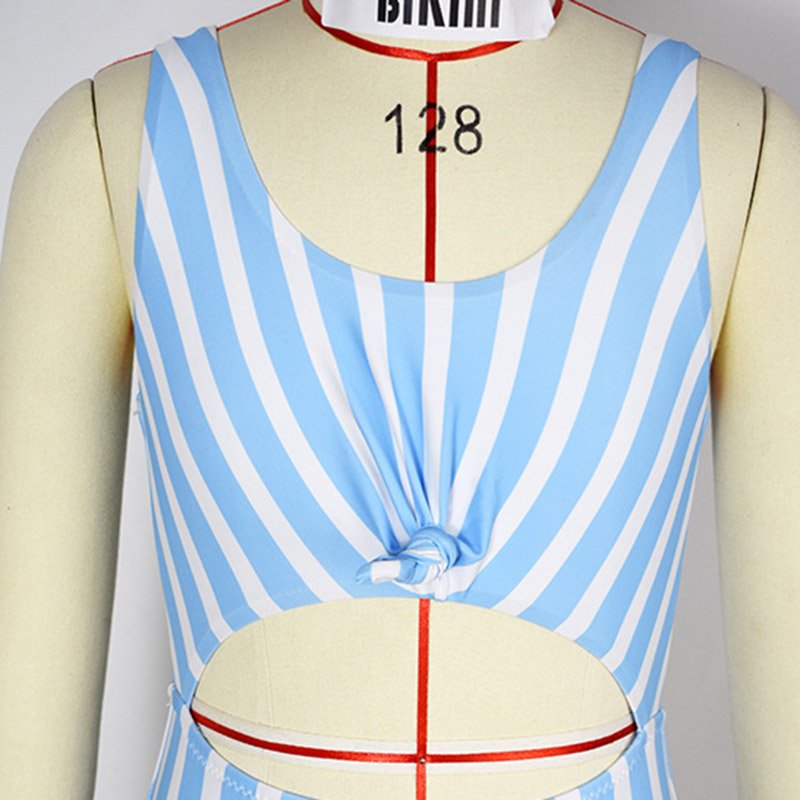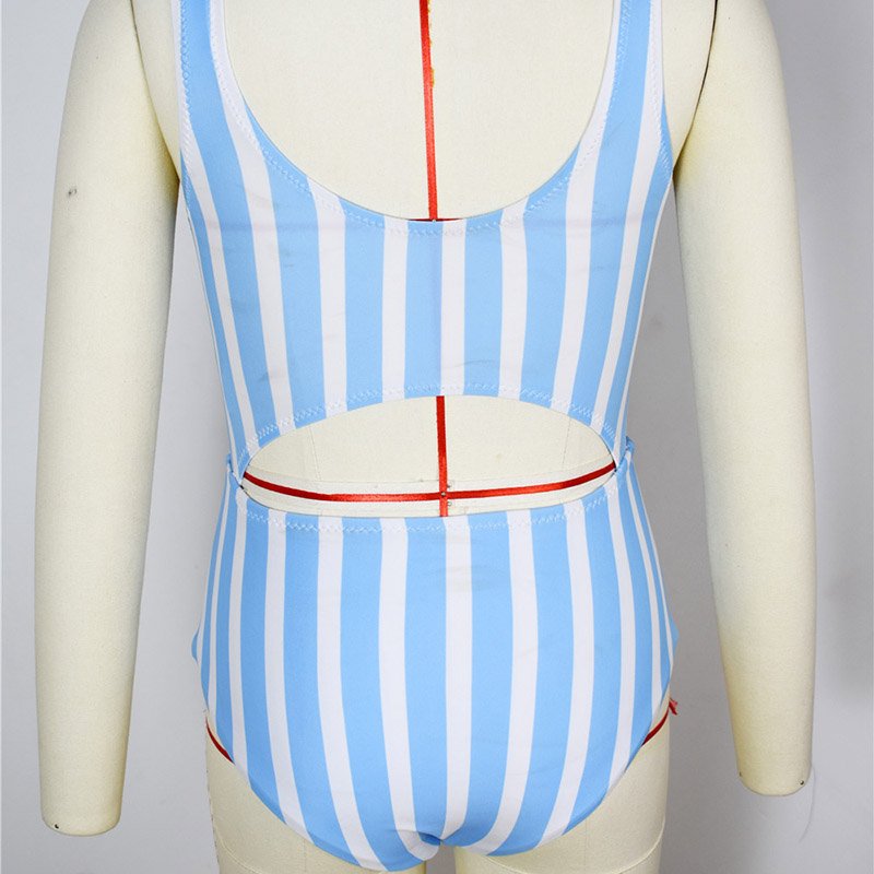 Girls Fashion Striped Cropped One-piece Swimsuit