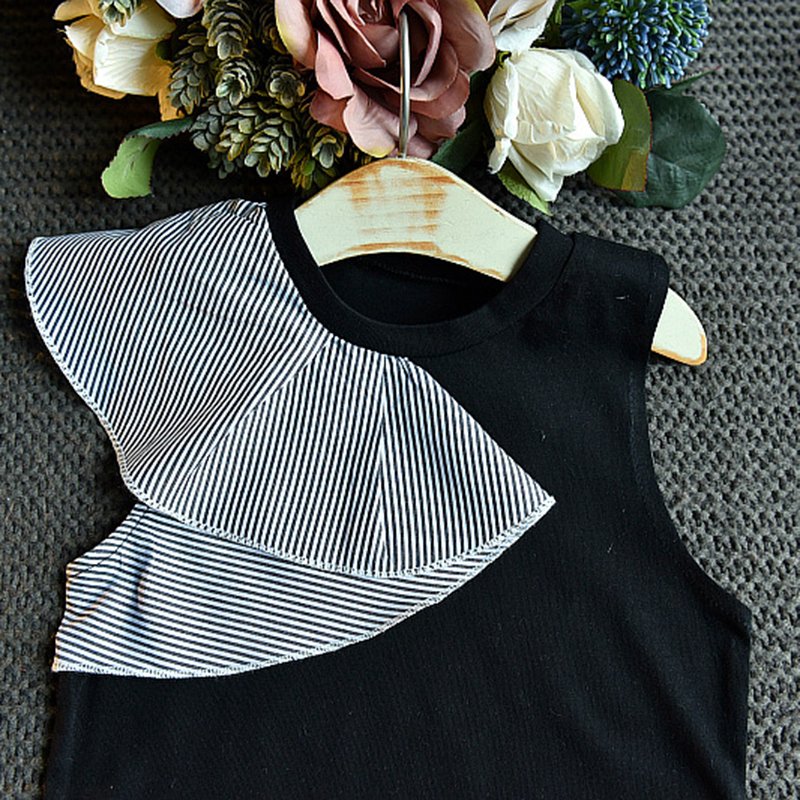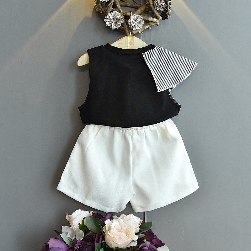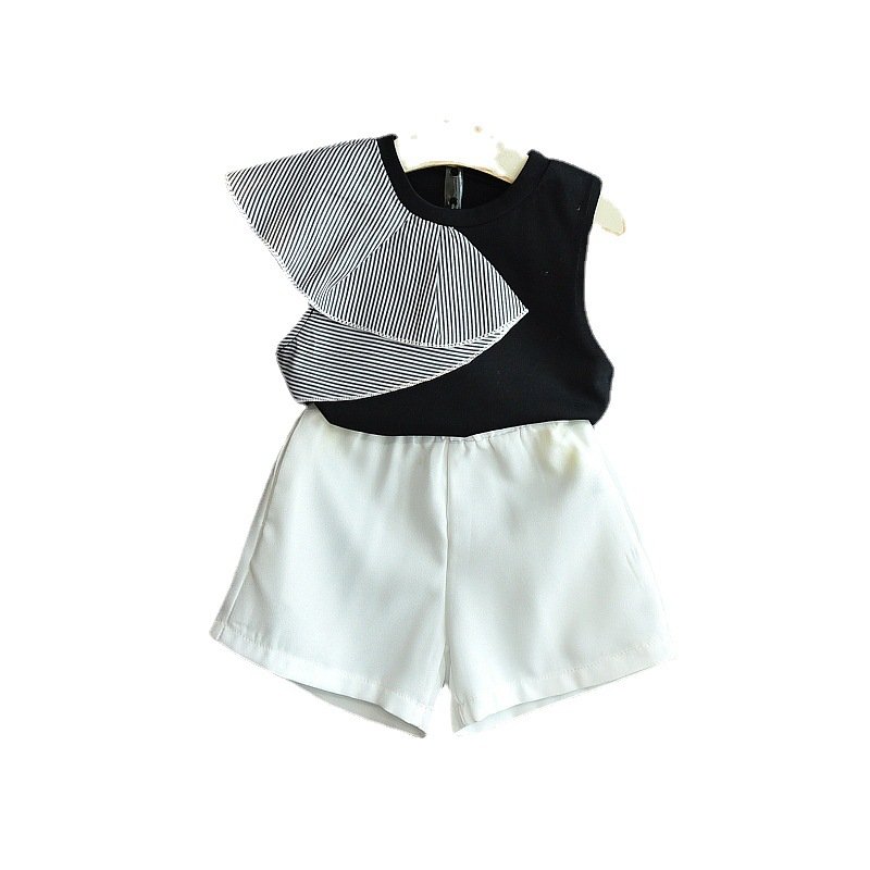Girls Fashion striped Ruffled Tops And Solid Color Shorts
