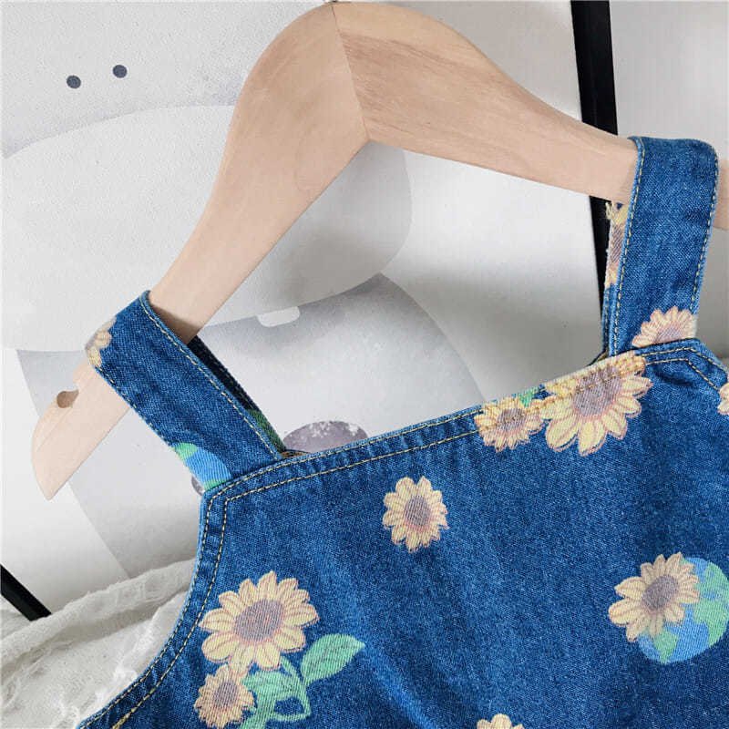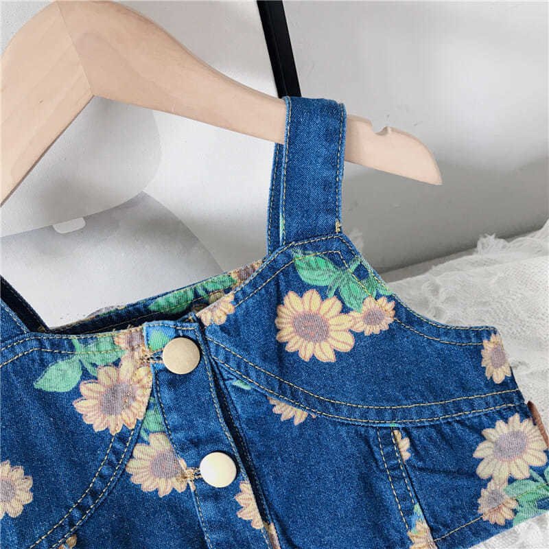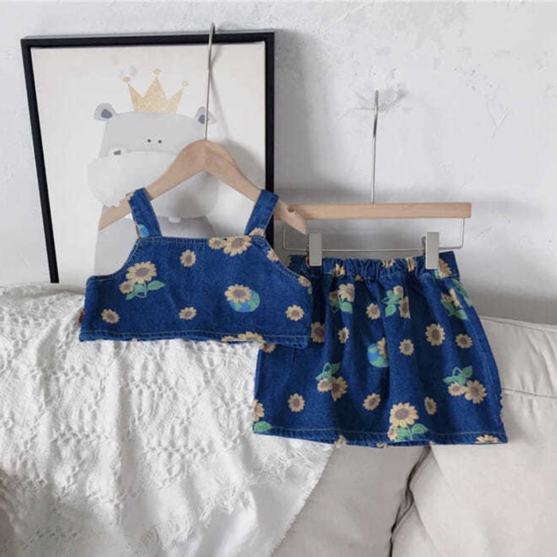 Girls Fashion Sunflower Pattern Denim Camisole And Skirt Set