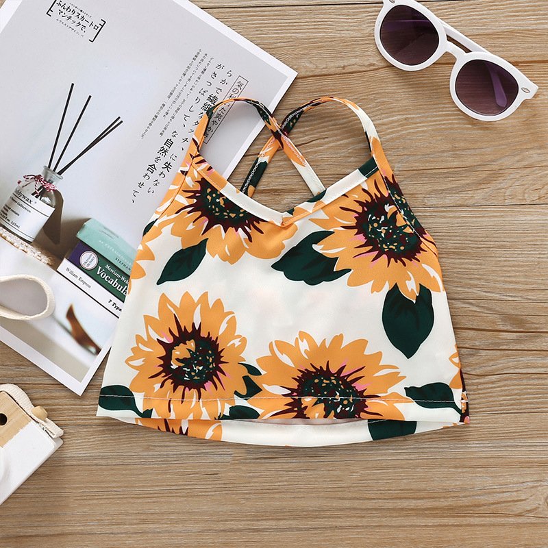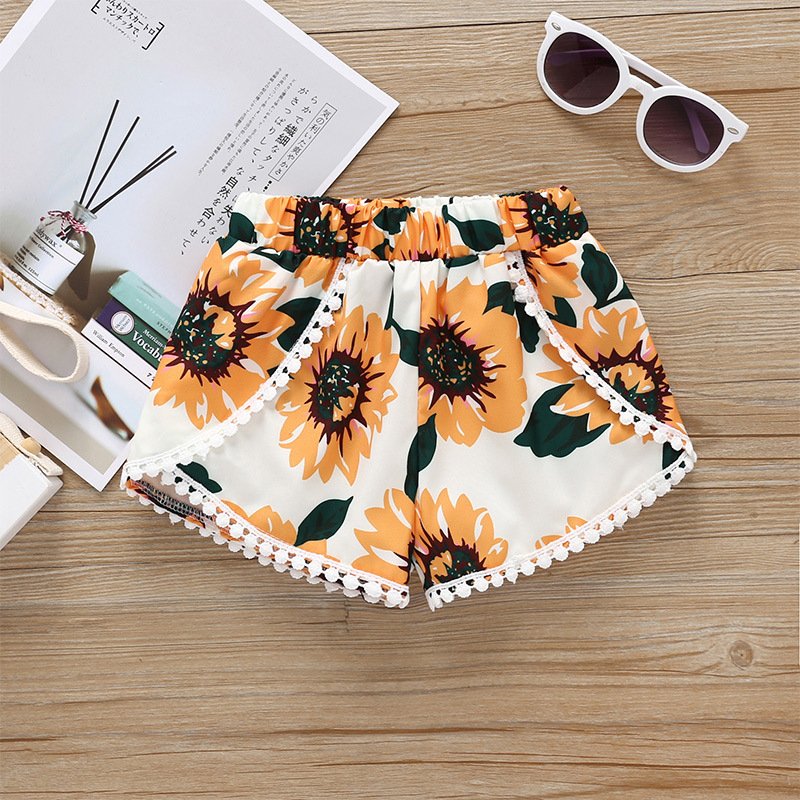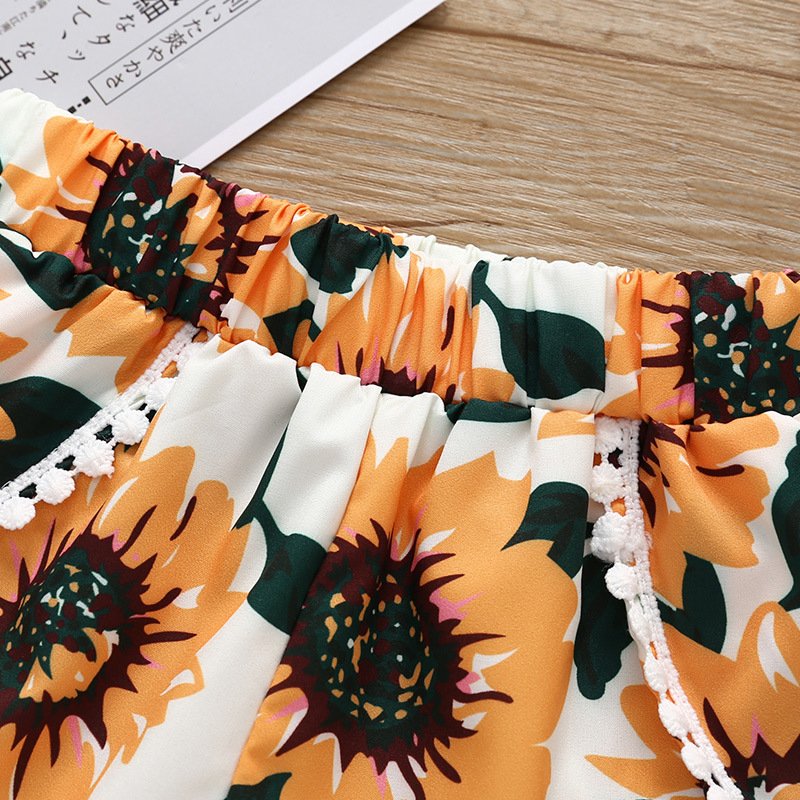 Girls Fashion Sunflower Pattern Tops And Shorts Set