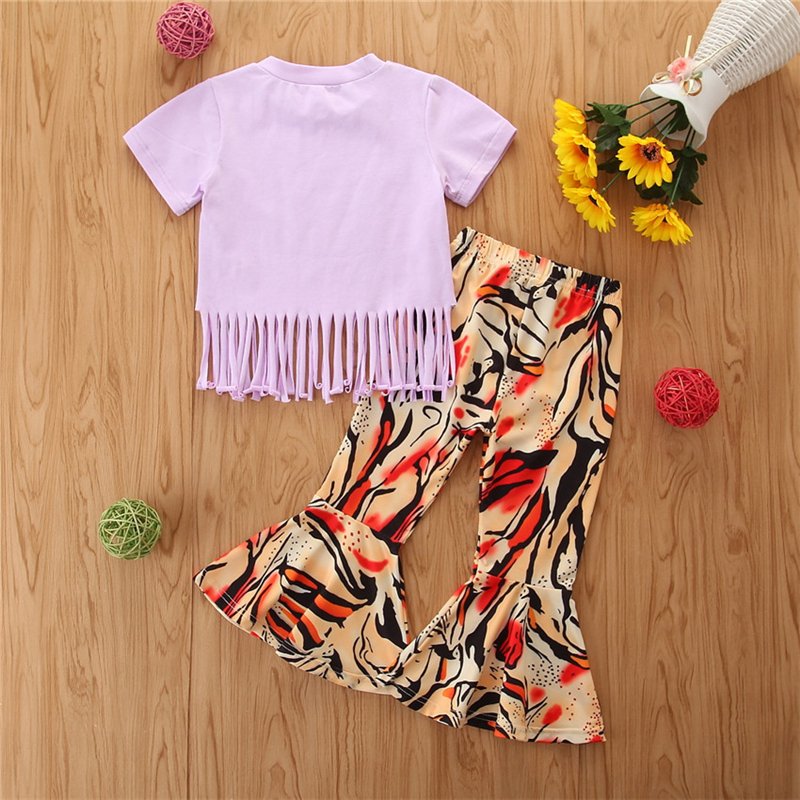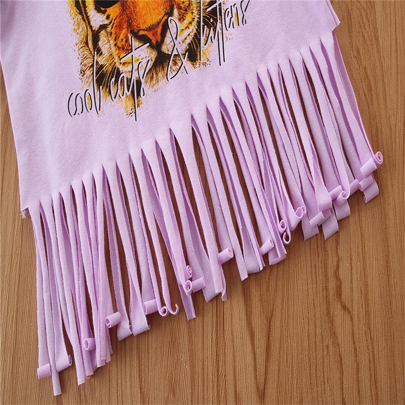 Girls Fashion Tiger Pattern Tassels Design T-Shirt And Pants Set