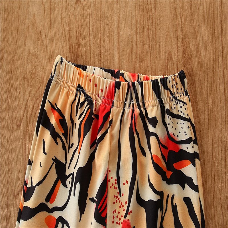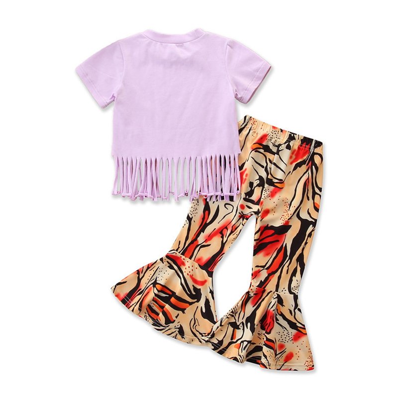 Girls Fashion Tiger Pattern Tassels Design T-Shirt And Pants Set