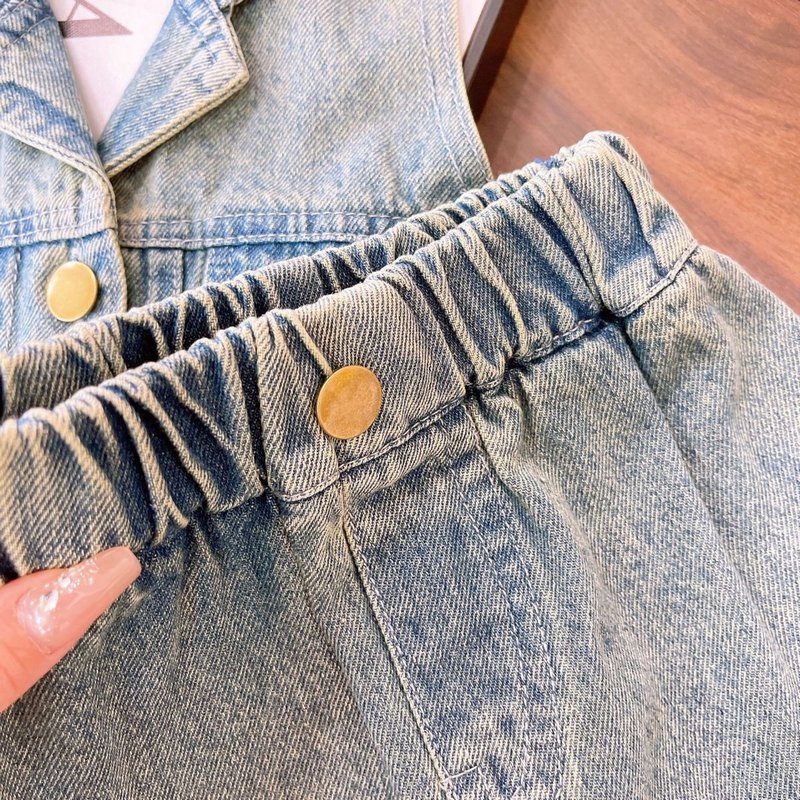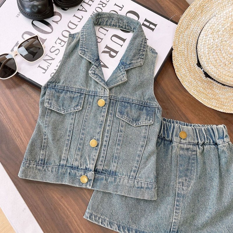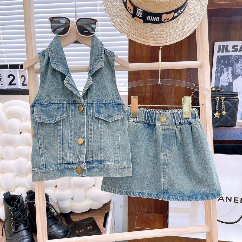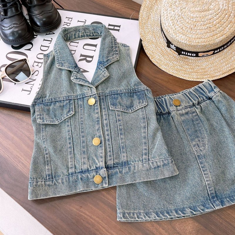 Girls Fashion Two-Piece Halter Top And Skirt Denim Set