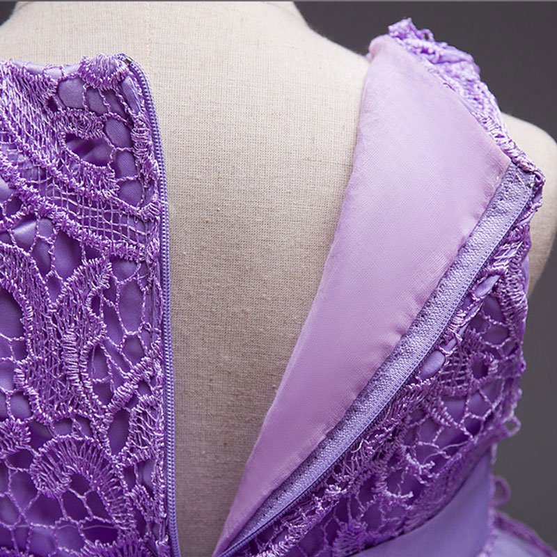 Girls Floral Embroidered Sleeveless Party Lace Dress