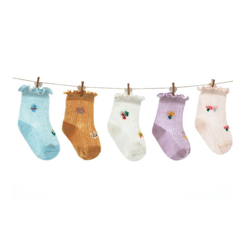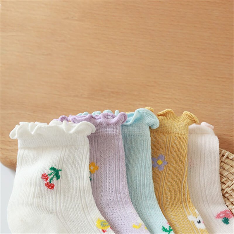 Girls Flower And Fruit Pattern Breathable Socks