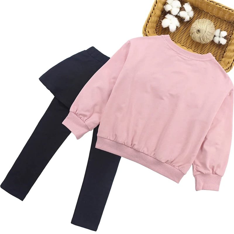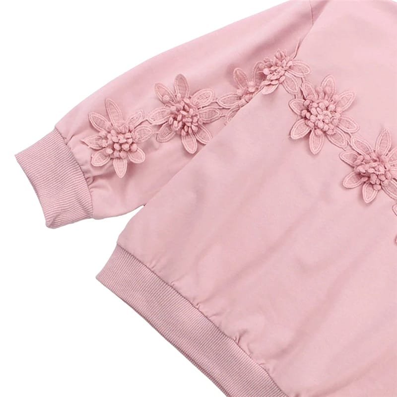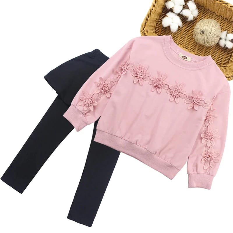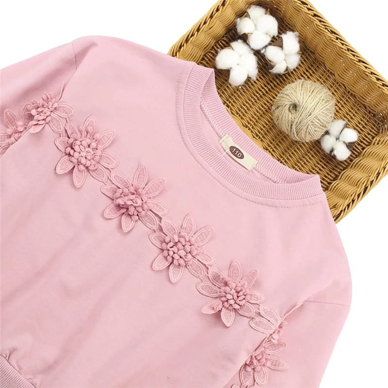 Girls Flower Design Solid Color Sweatshirt And Culotte Set