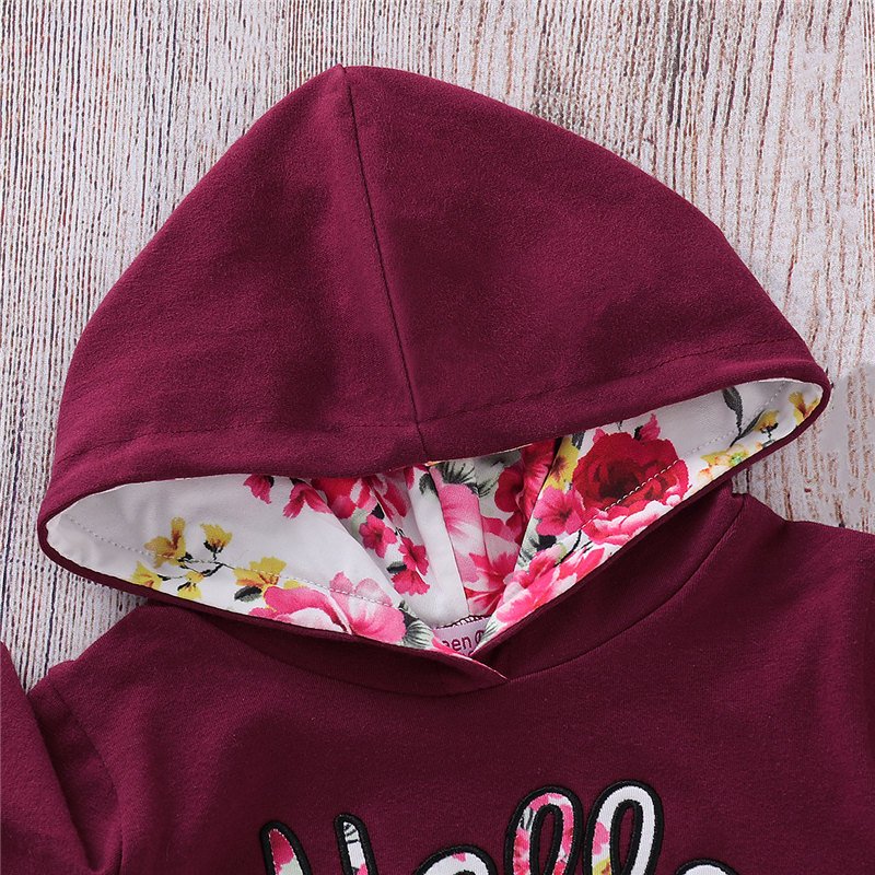 Girls Hello Pattern Sports Sweatshirt And Flower Printed Trousers With Headband