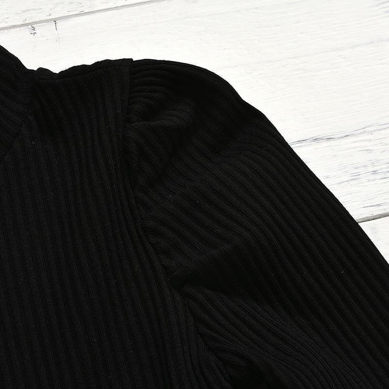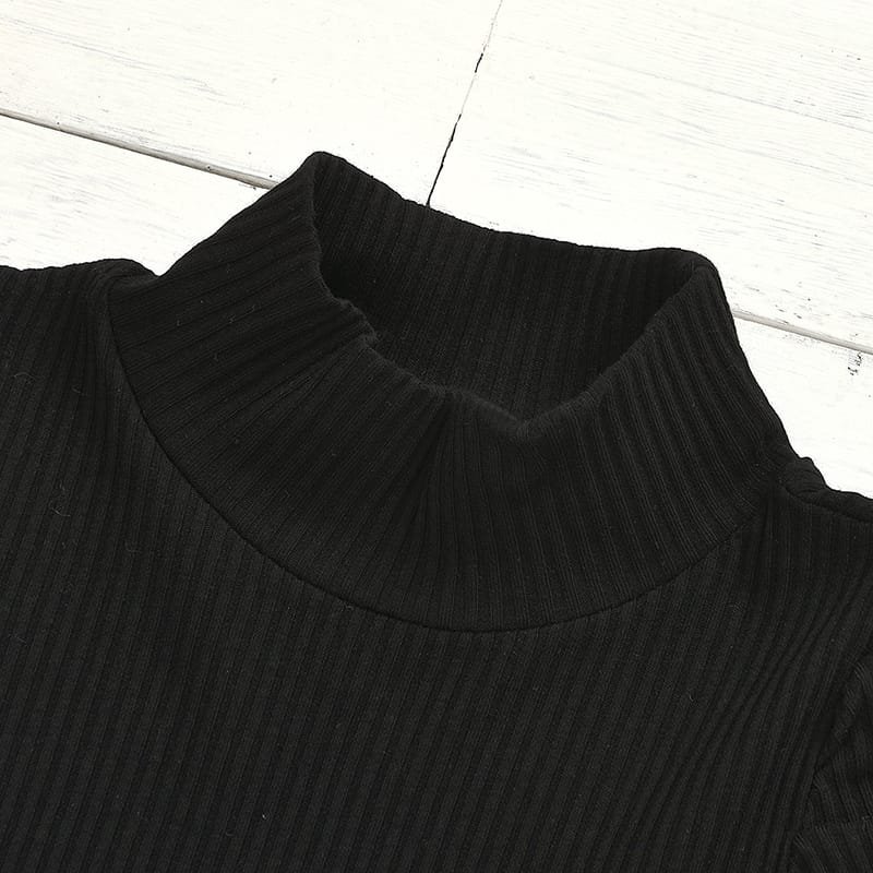 Girls High Collar Long-sleeves Solid Color Tops And PU Skirt Set