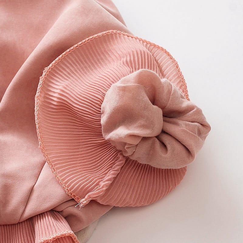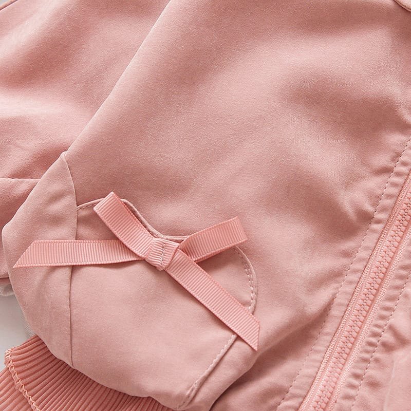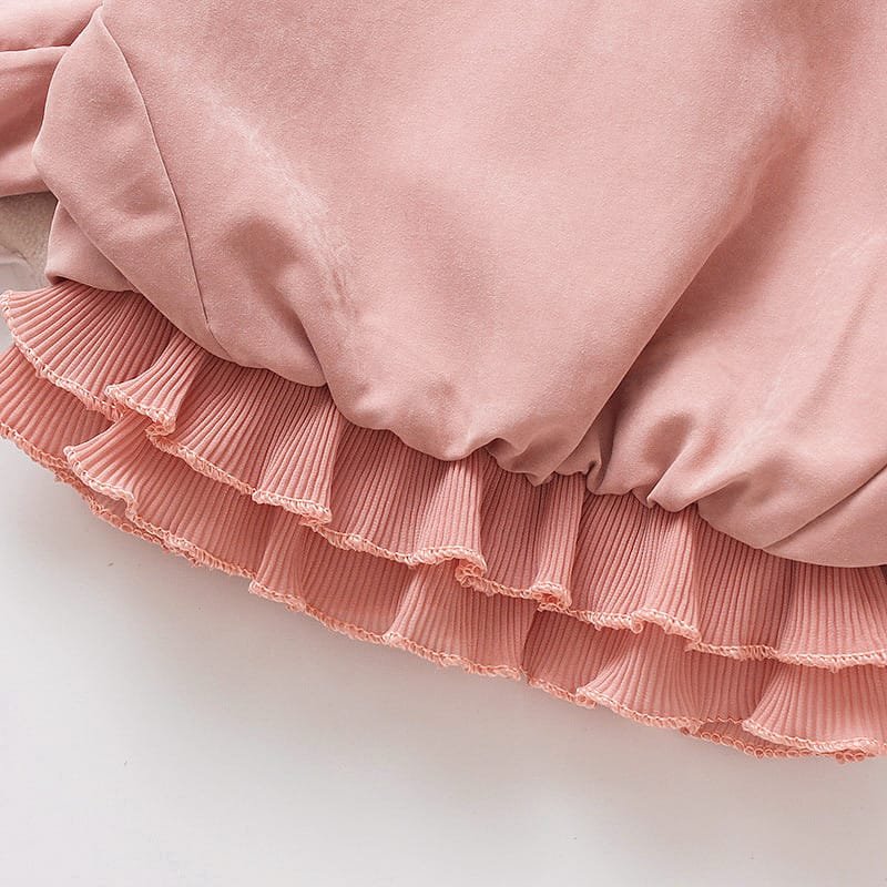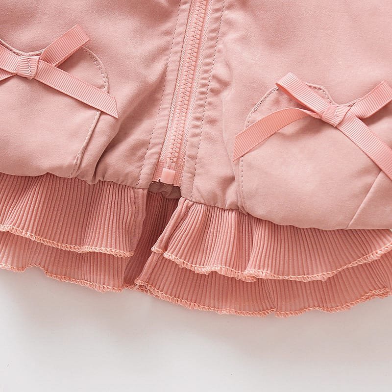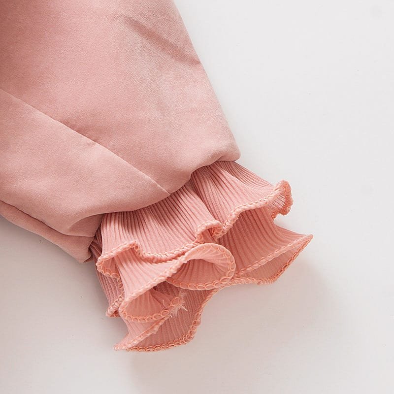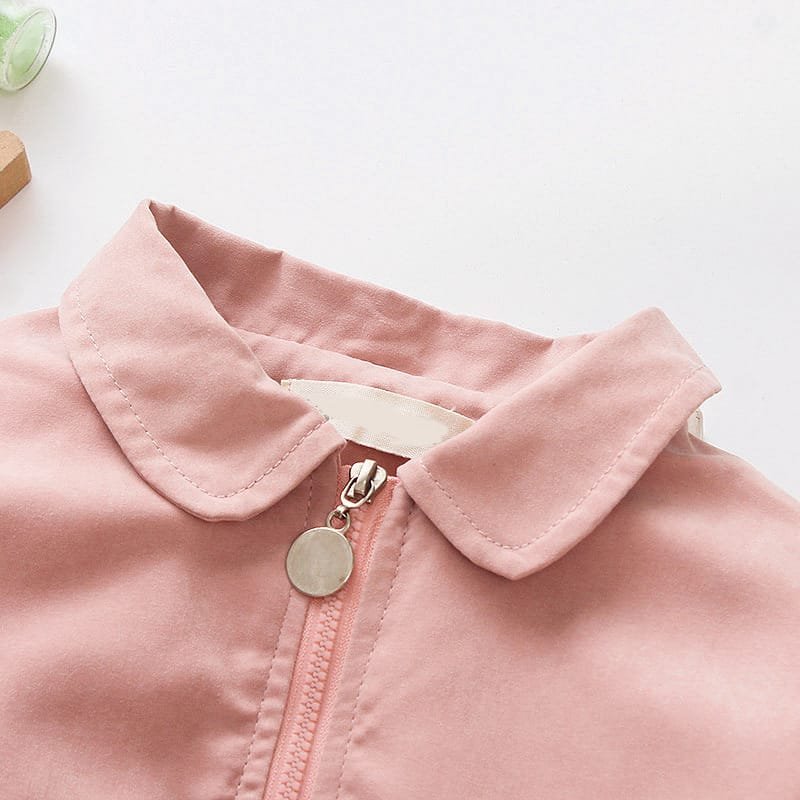 Girls Lapel Cuff Flounced Design Solid Color Zipper Coat