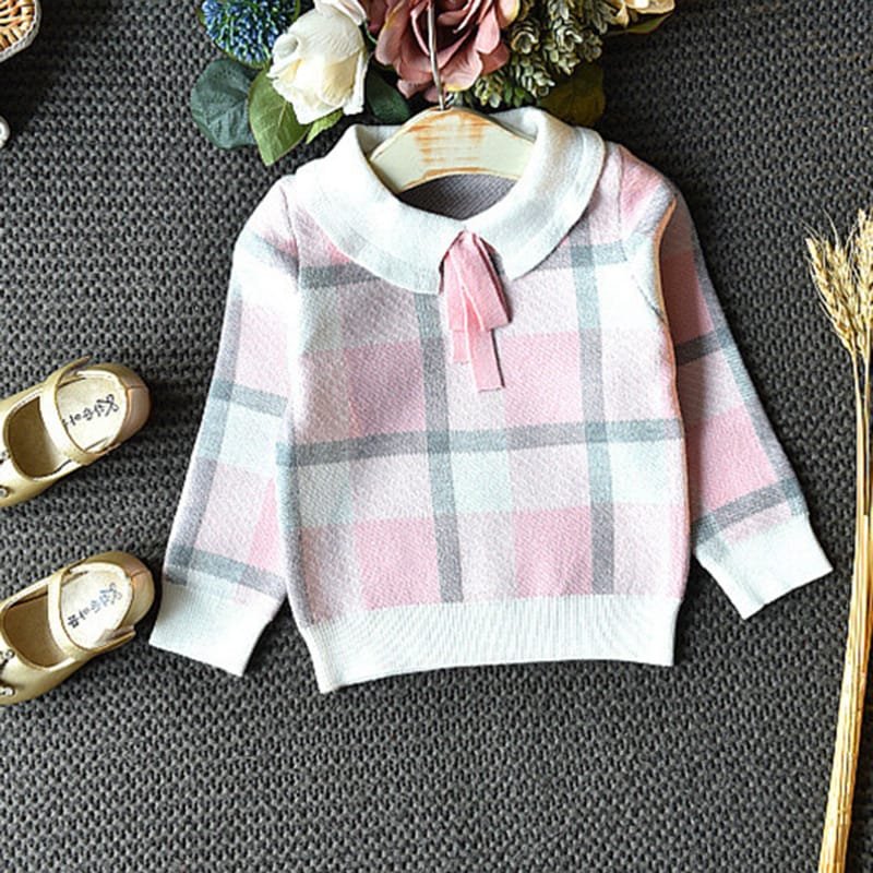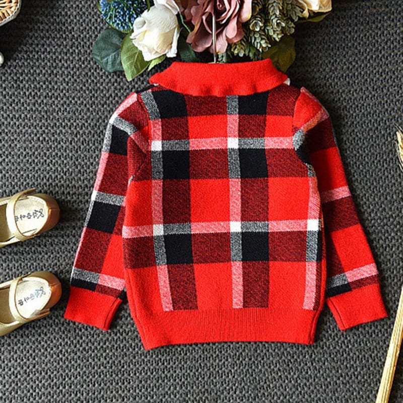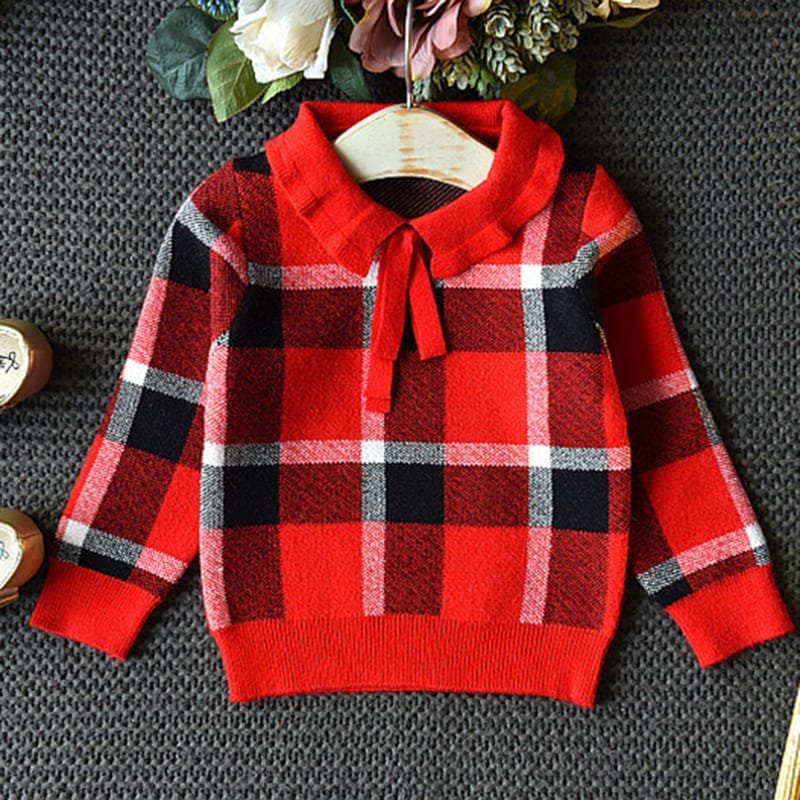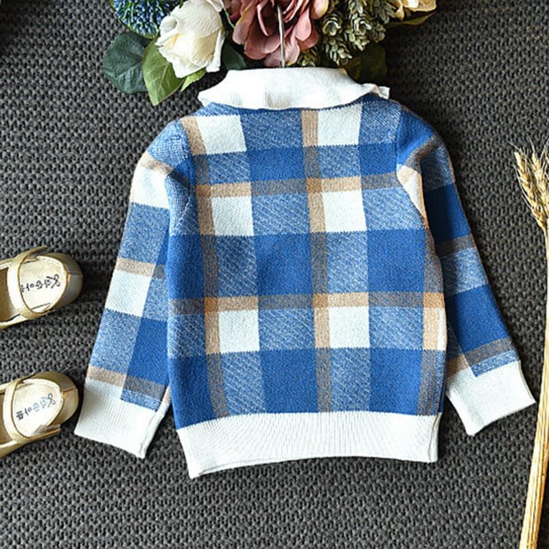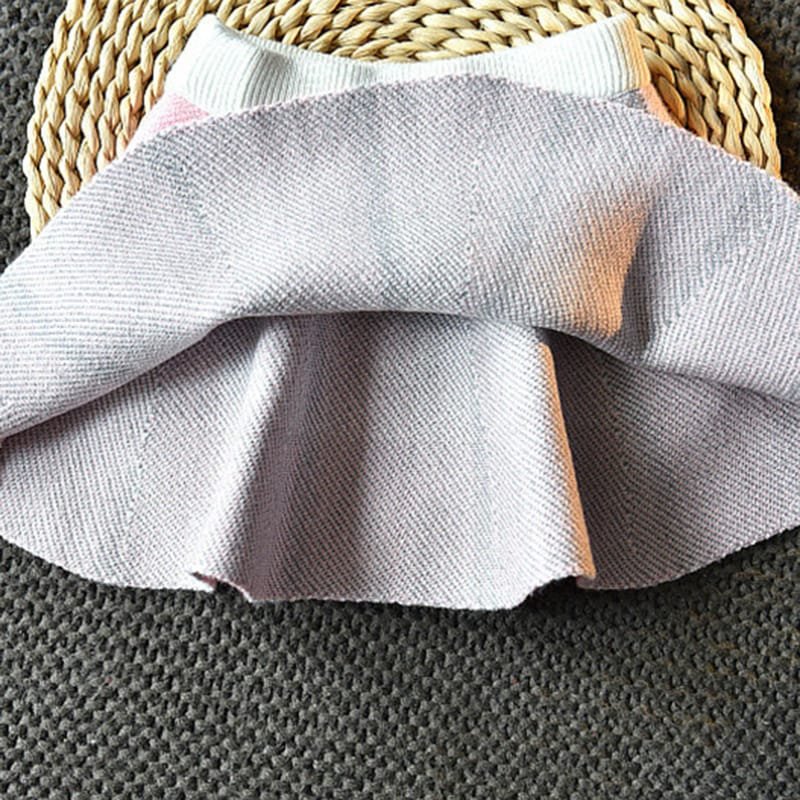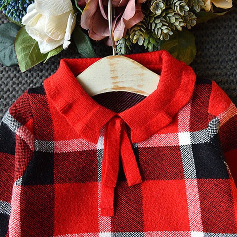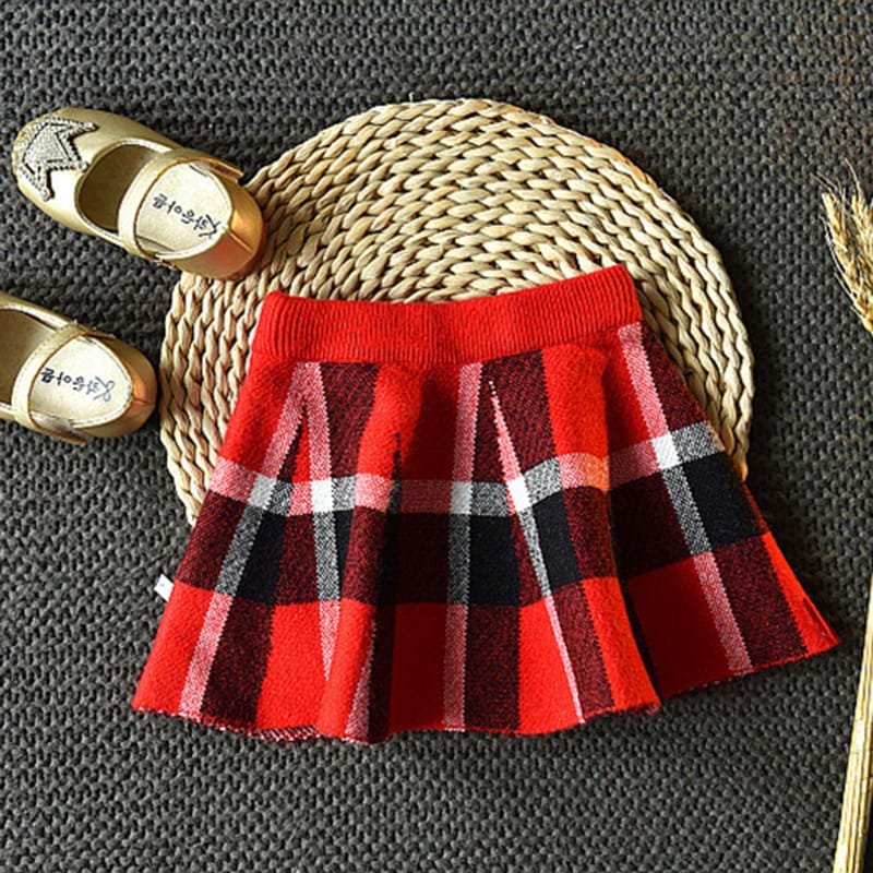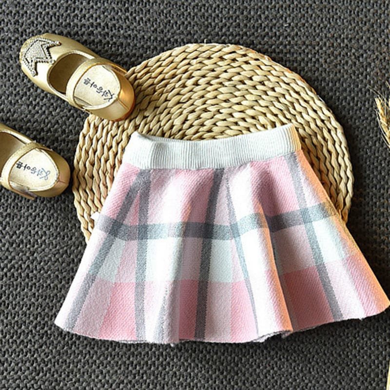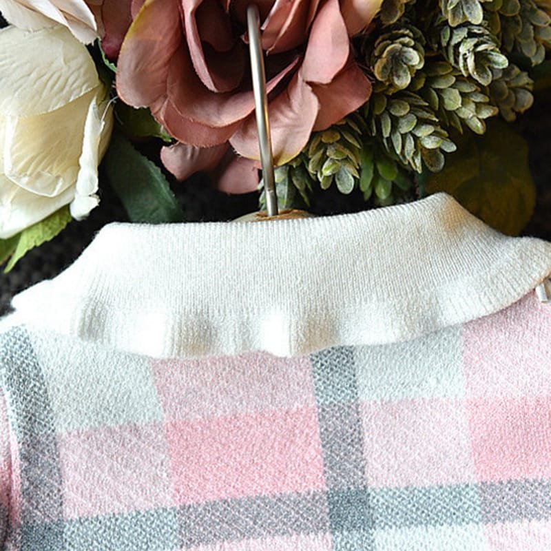 Girls Lapel Design Plaid Tops And Skirt Set
