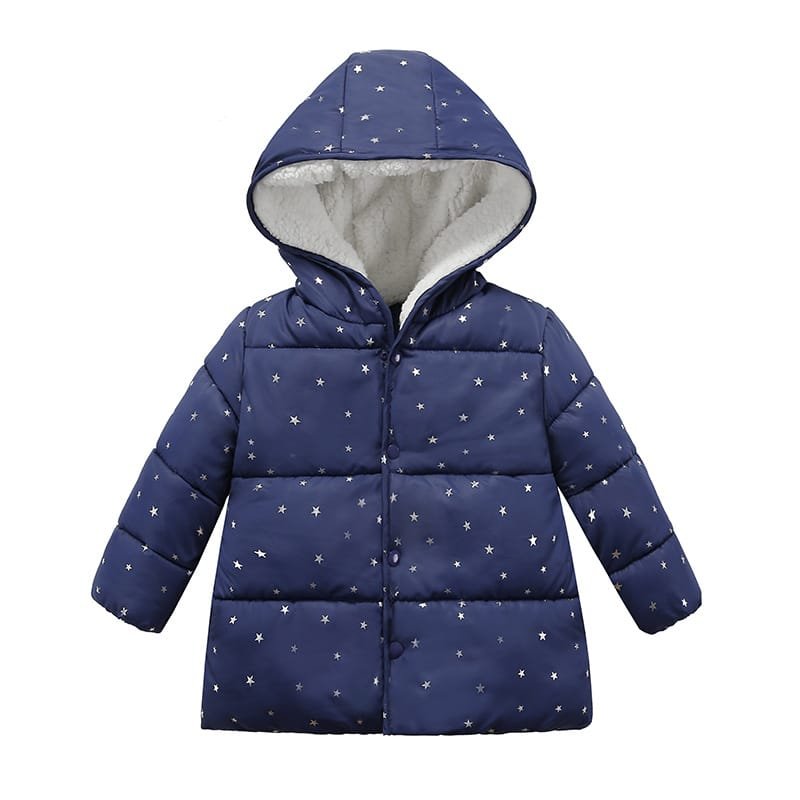 Girls Little Star Pattern Single-breasted Hooded Coat