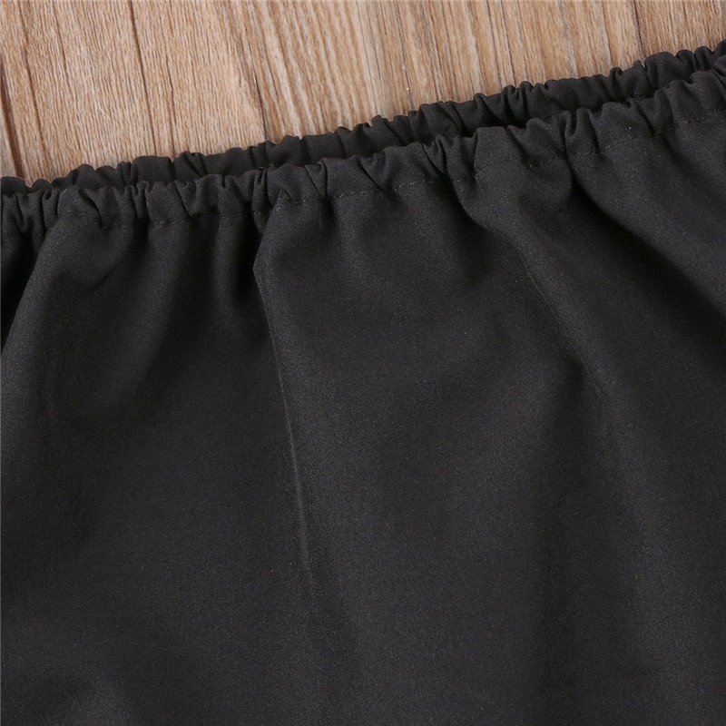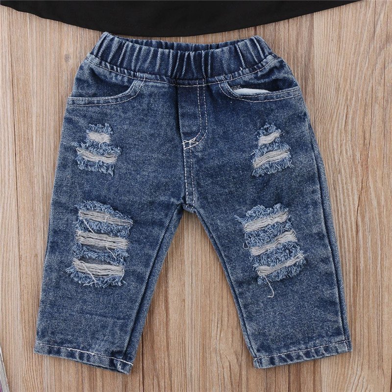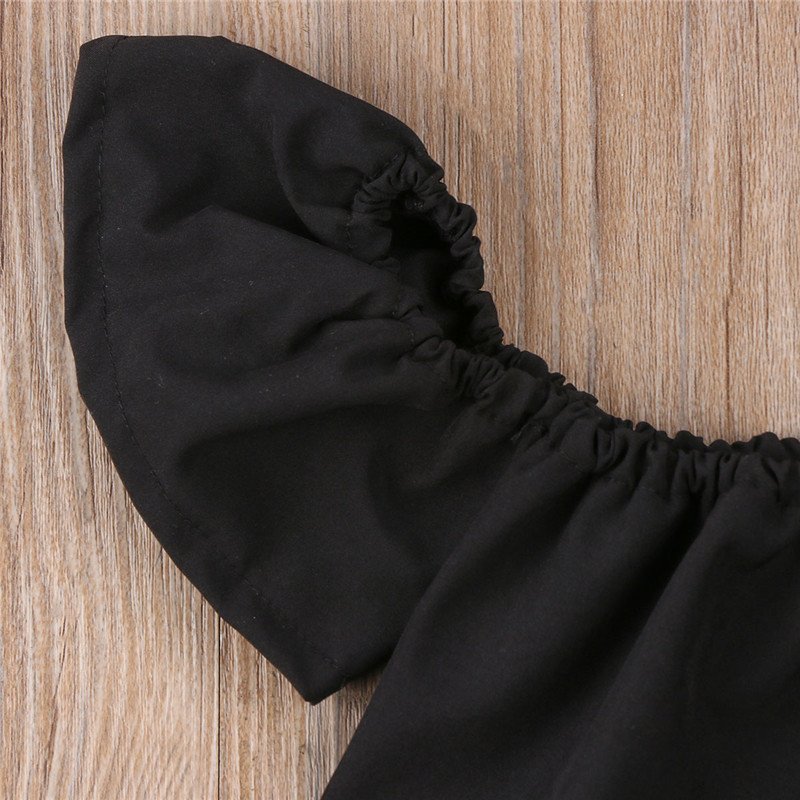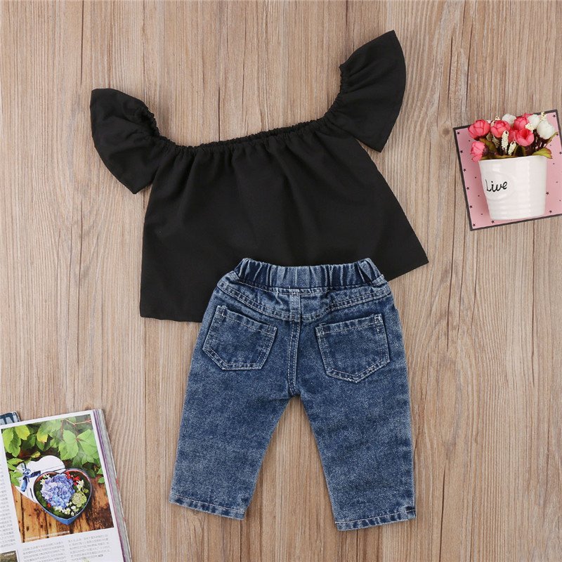 Girls Off-shoulder Black Top And Jeans With Headband Set