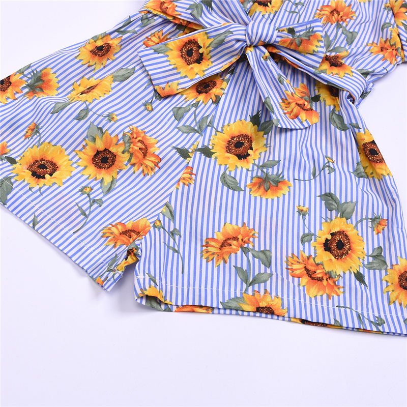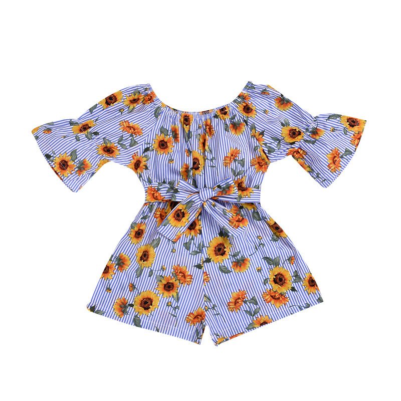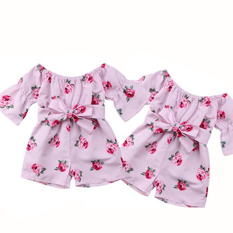 Girls Off-the-Shoulder Rose Print Short-sleeved Romper