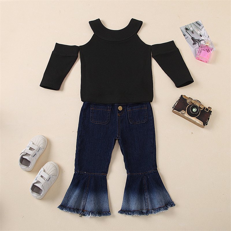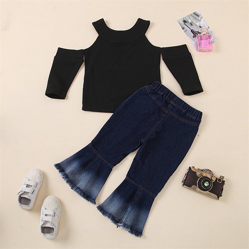 Girls Off-the-shoulder Tops And Flared Trousers Set