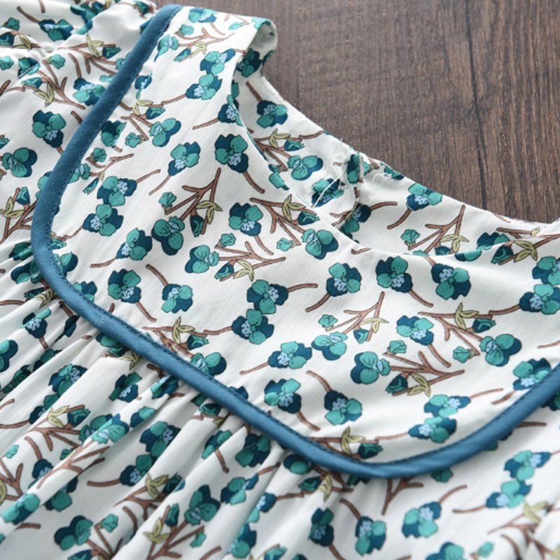 Girls Pastoral Floral All Over Print Round Neck Short-sleeved Dress
