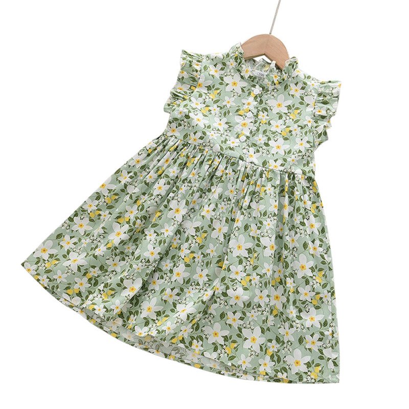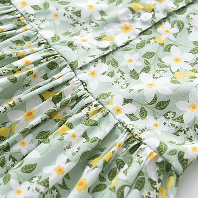 Girls Pastoral Stringy Selvedge Design Floral All Over Print Dress
