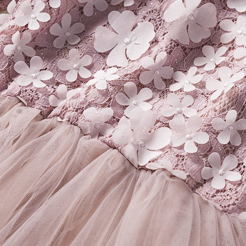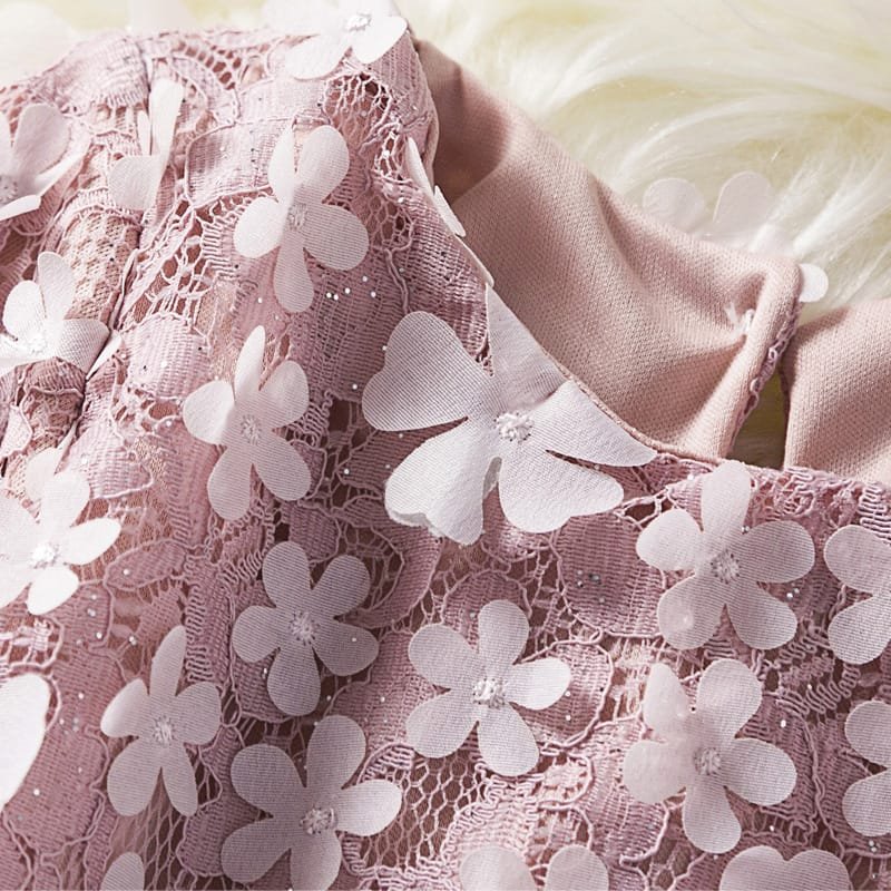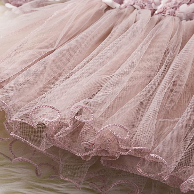 Girls Petal Design Long-Sleeves Fluffy Dress