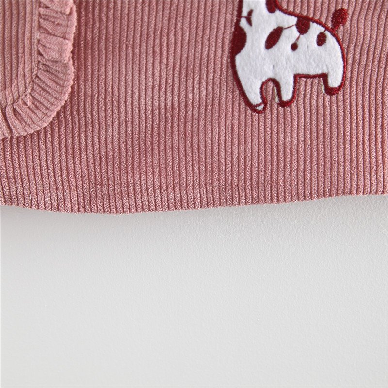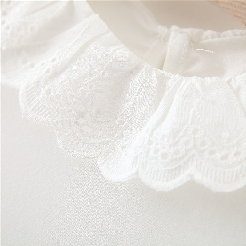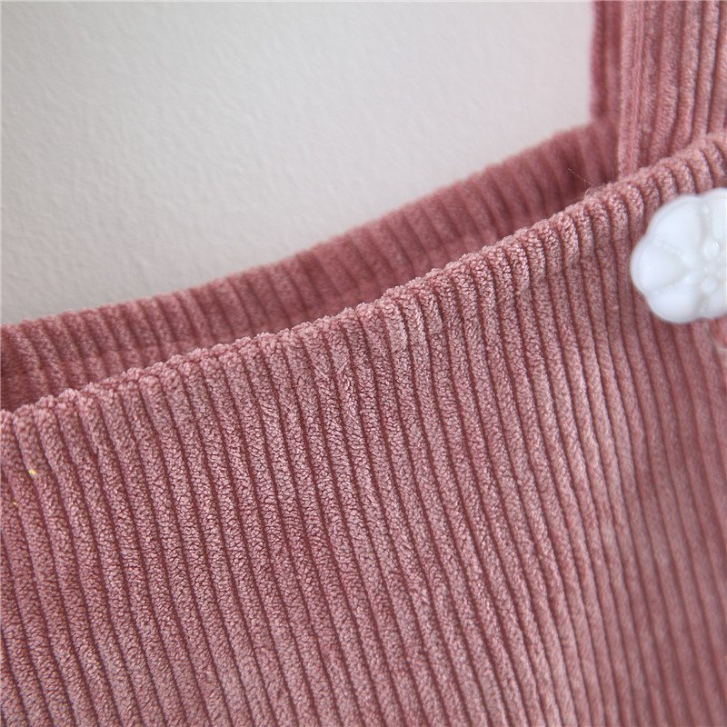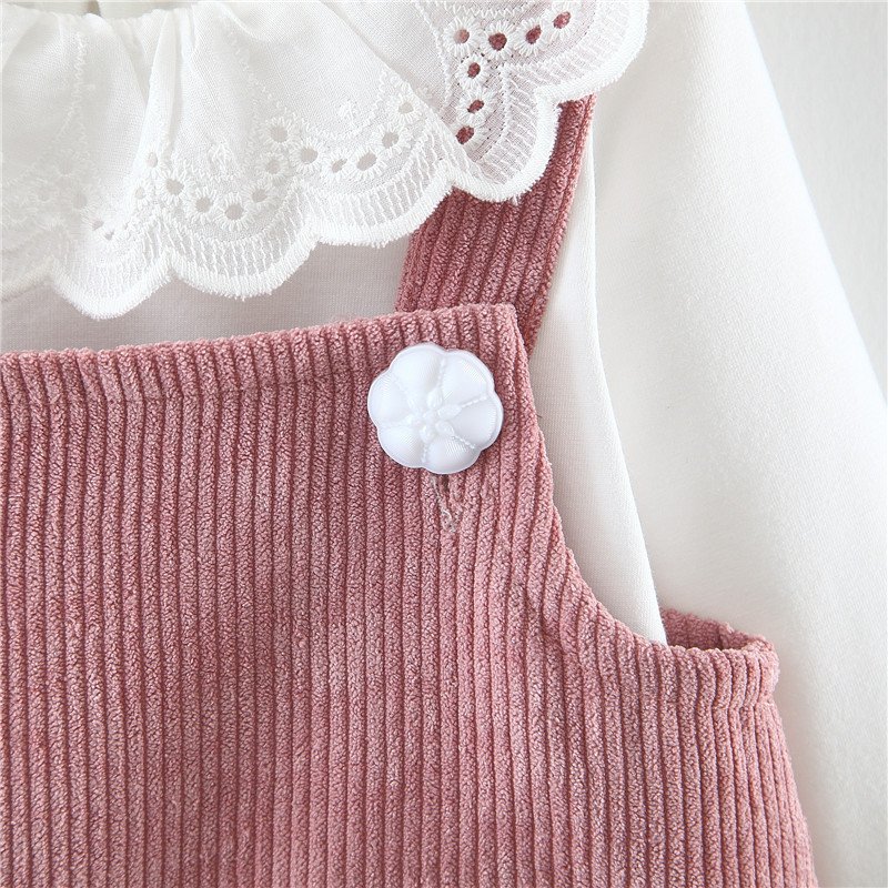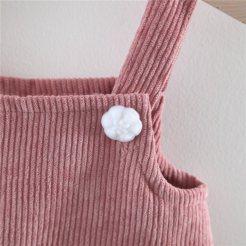 Girls Peter Pan Collar T-Shirt Corduroy Suspender Vertical Striped Dress Set