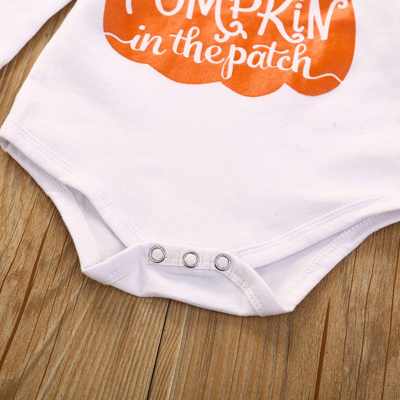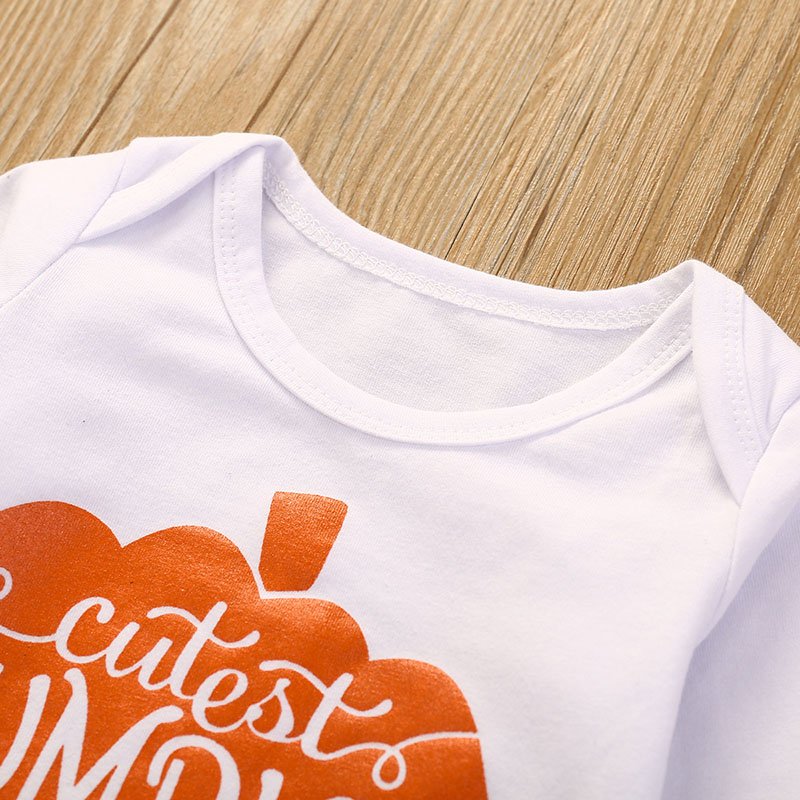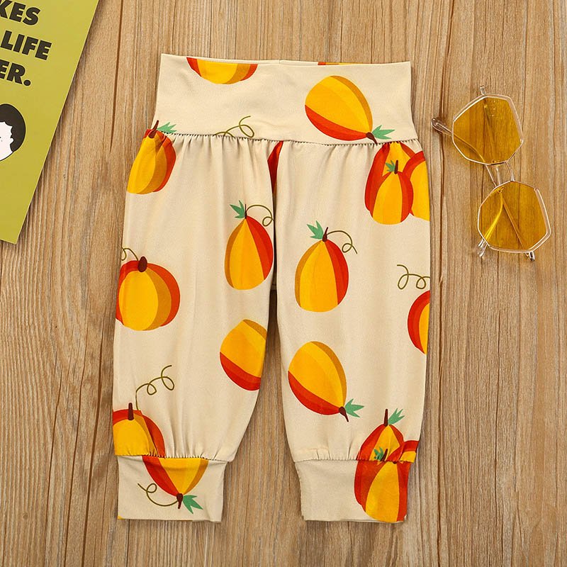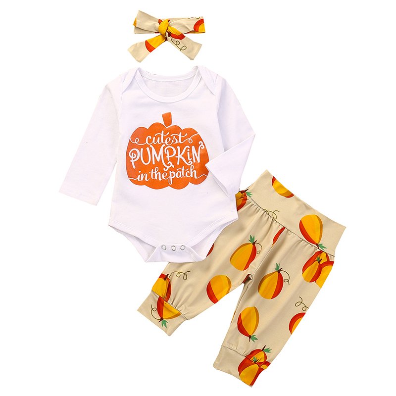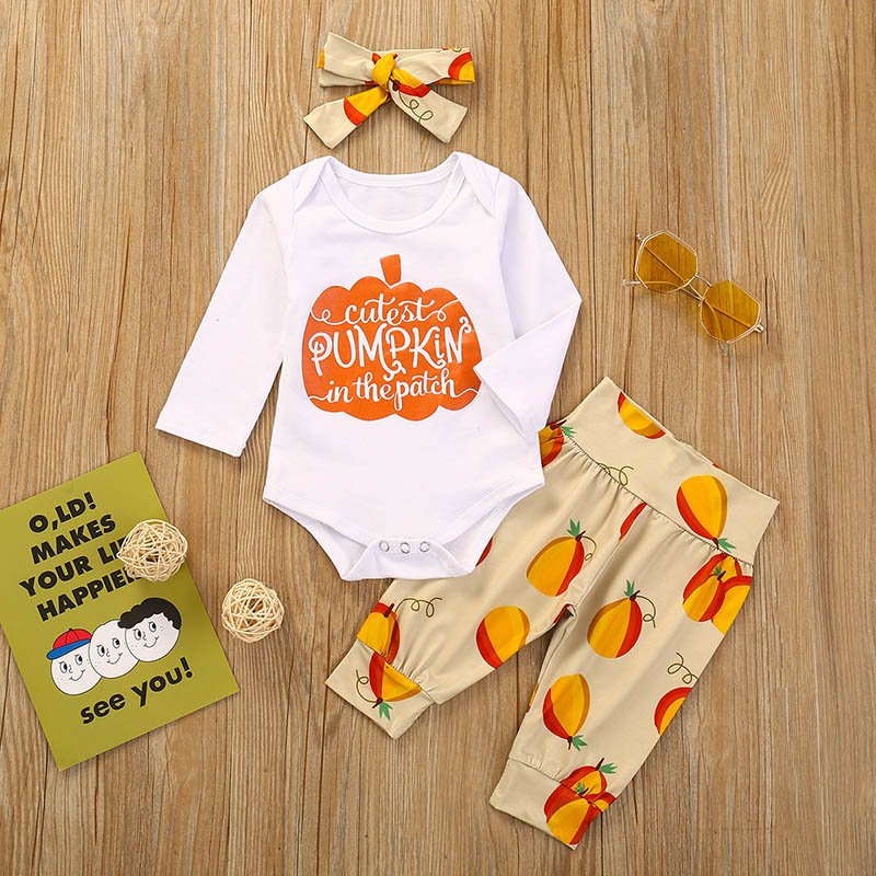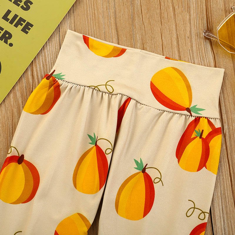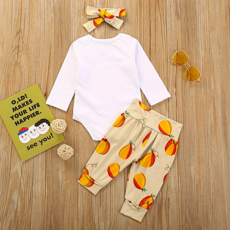 Girls Pumpkin Letter Printed Long Sleeve Tops And Fruit Printed Pants Headband Three Piece Sets