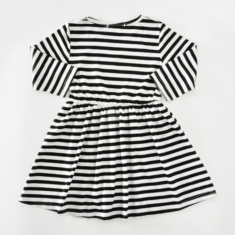 Girls Red Heart Stripes Printed Long Sleeves Dress
