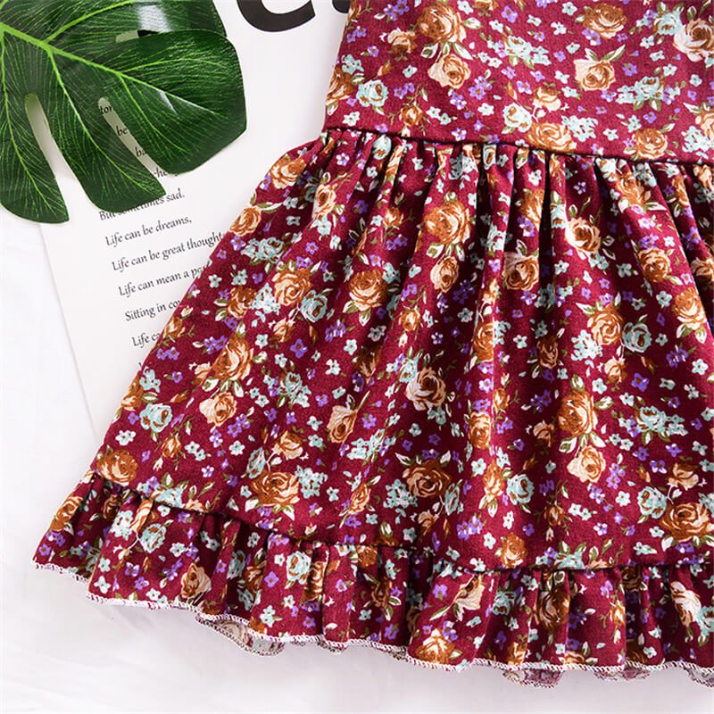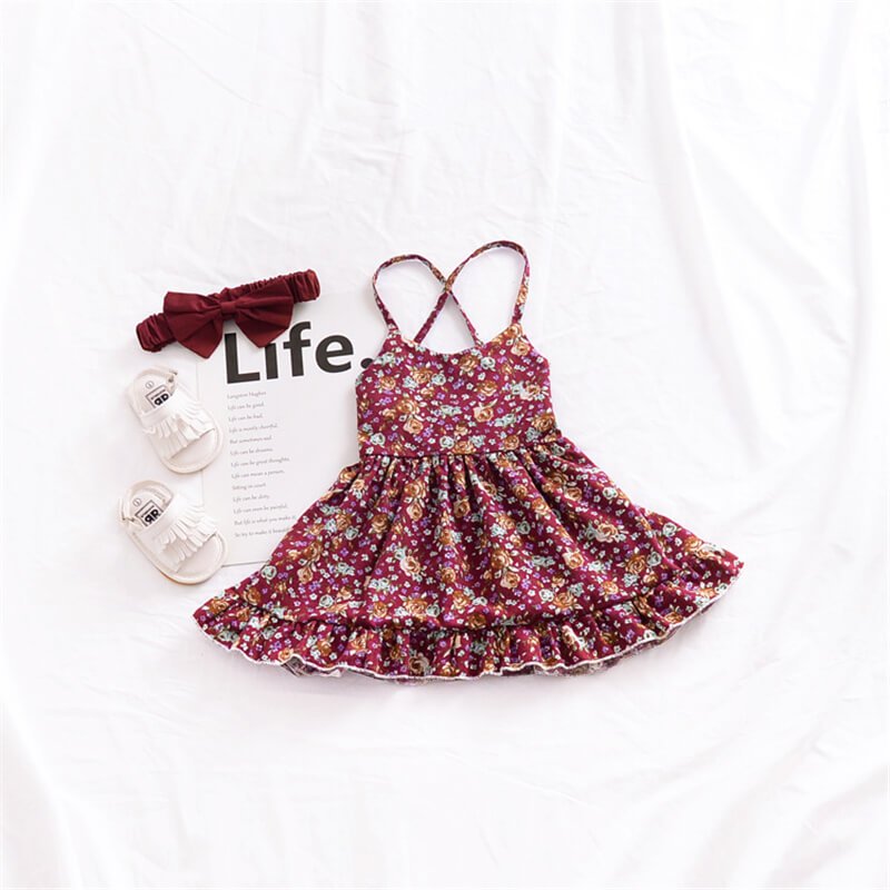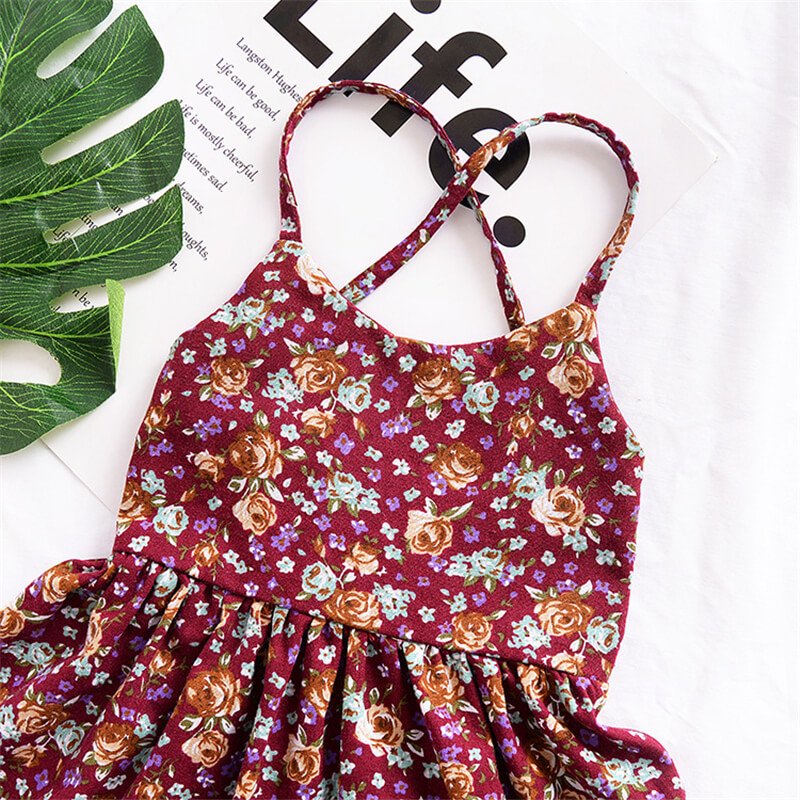 Girls Retro Floral Straps Halter Back Dress