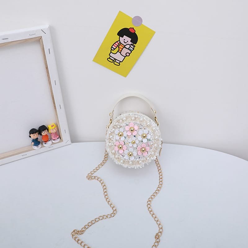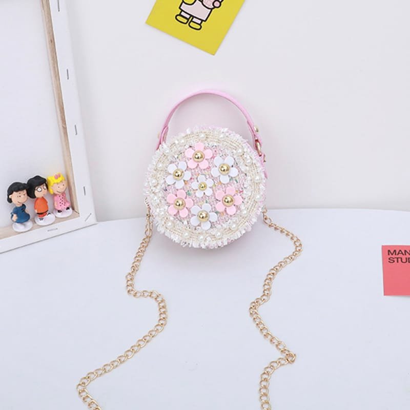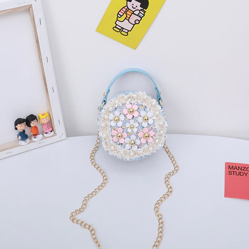 Girls Round Flower Decoration Crossbody Bag