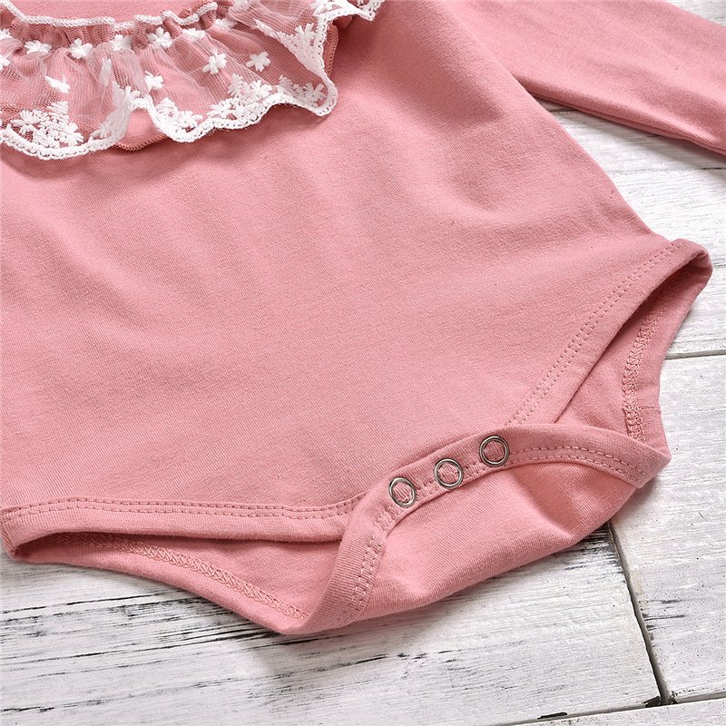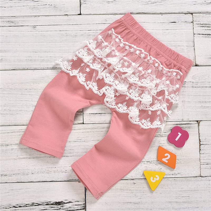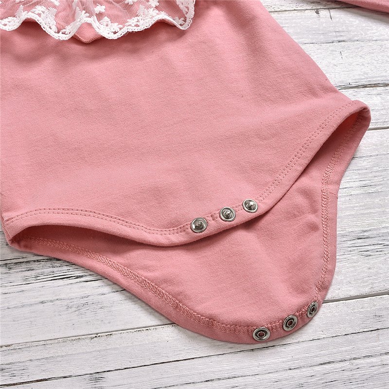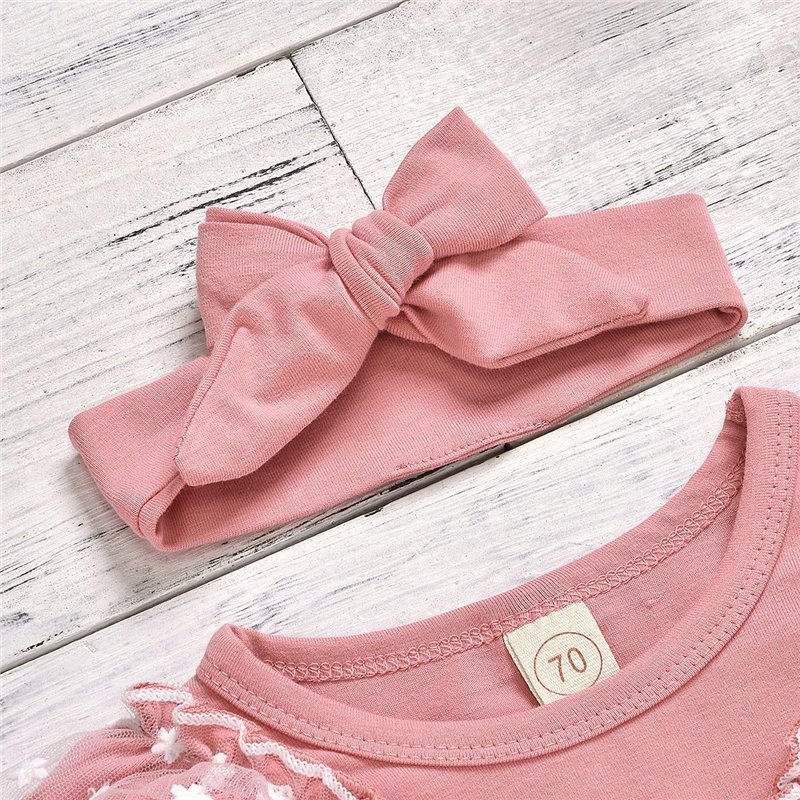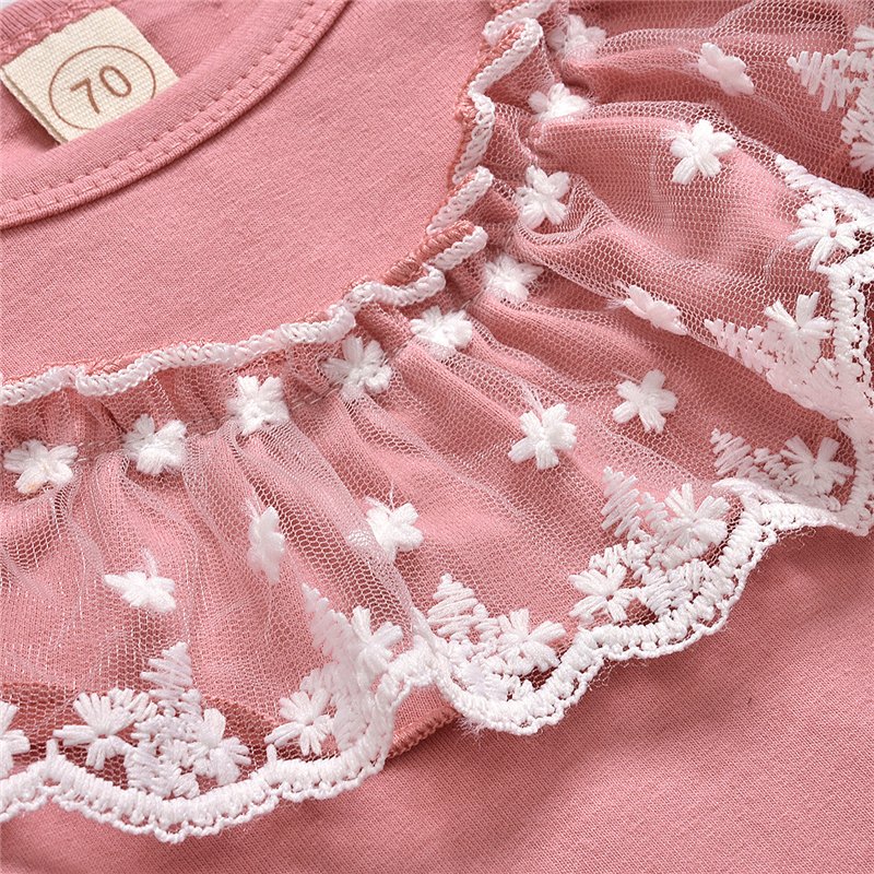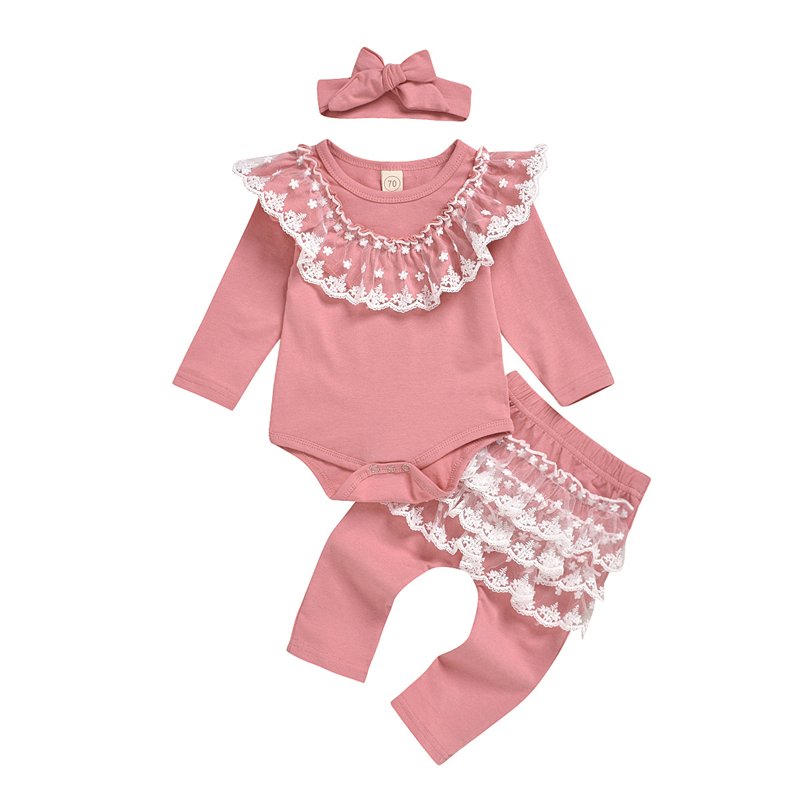 Girls Round Neck Lace Decor Romper And Pants With Headband Set
