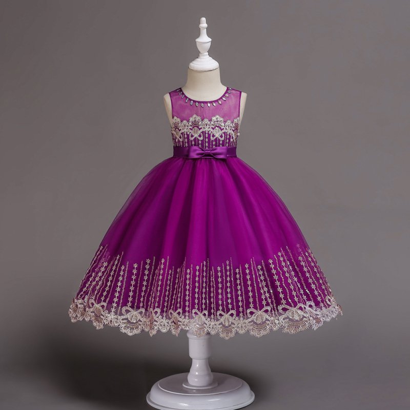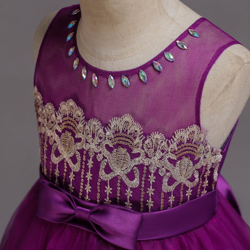 Girls Round Neck Lace Design embroidered Tutu Dress