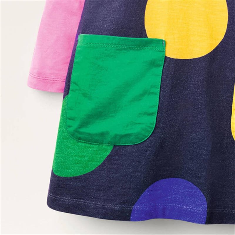 Girls Round Neck Polka Dot Color Blocking Dress