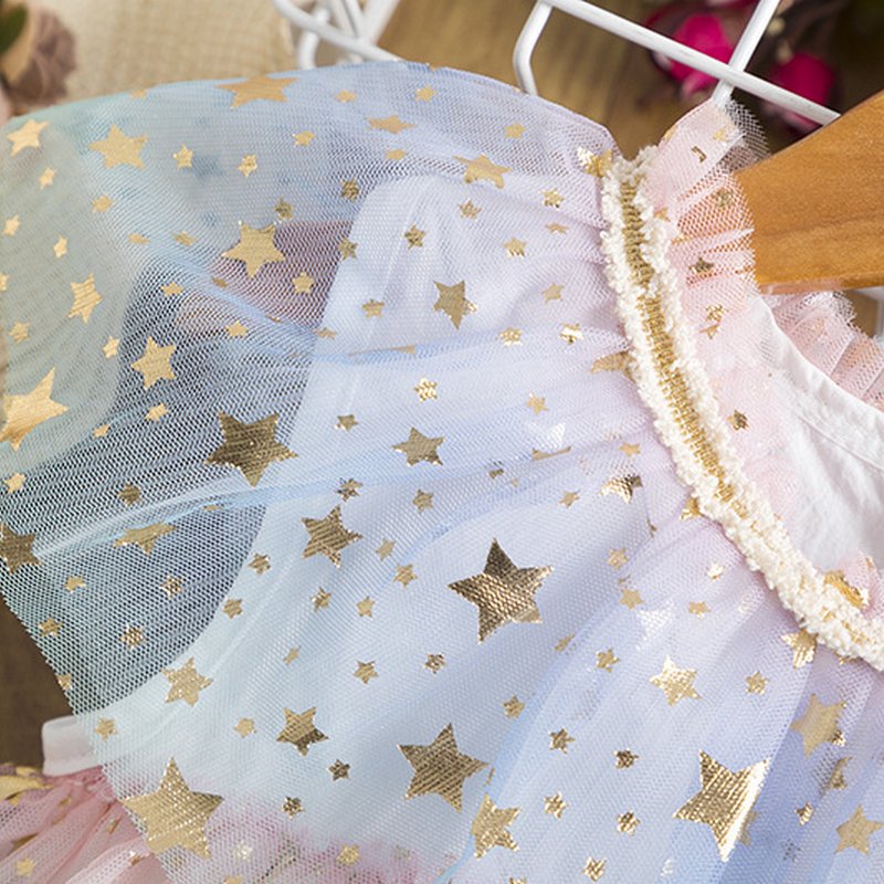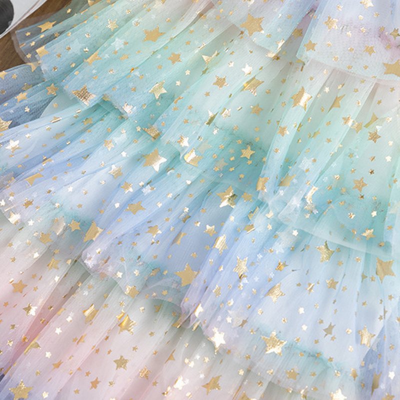Girls Round Neck Sleeveless Star Pattern Multilayer Gauze Puffy Princess Cake Dress