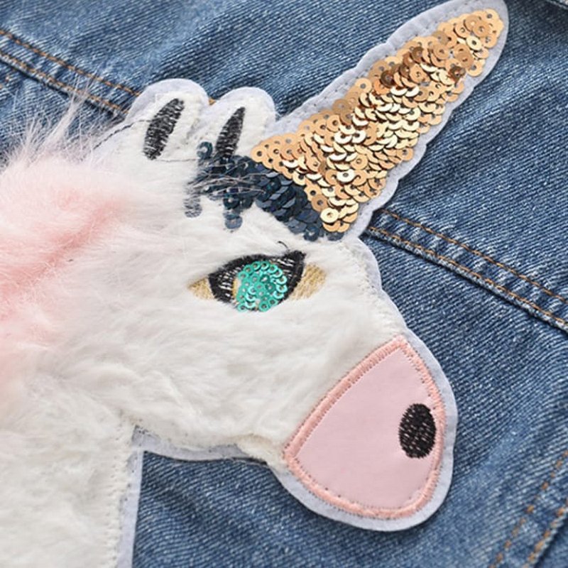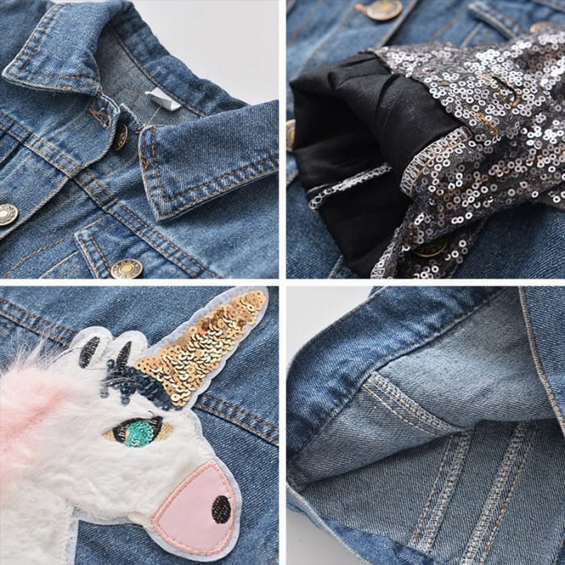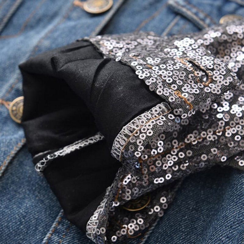 Girls Sequins Long Sleeves Cartoon Printed Denim Jacket