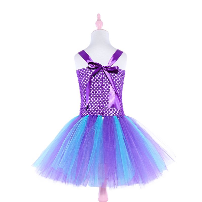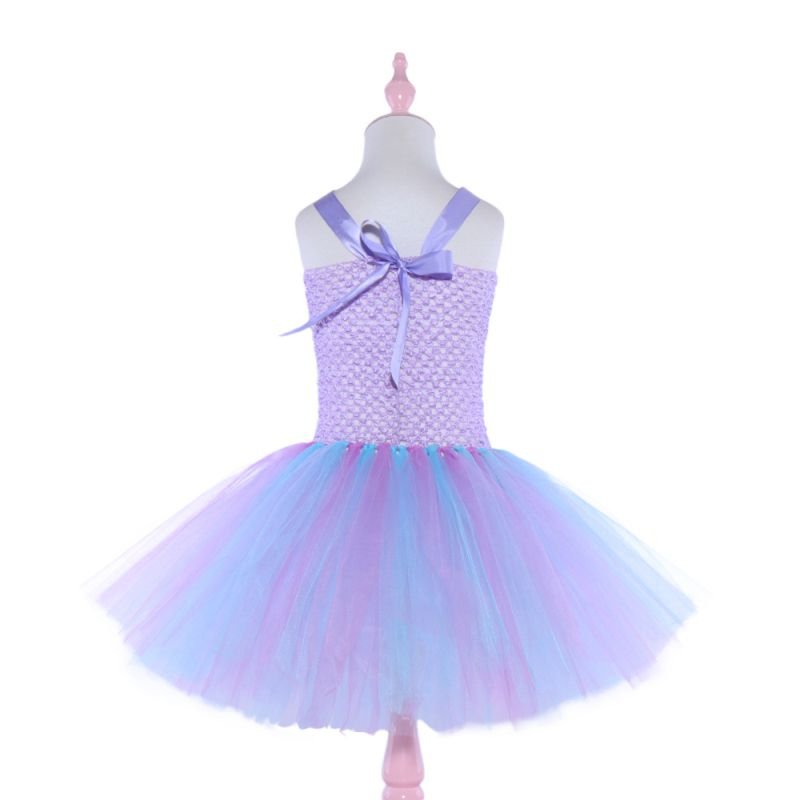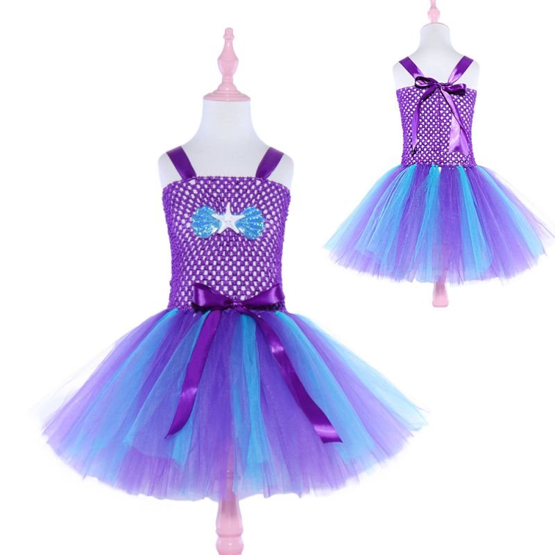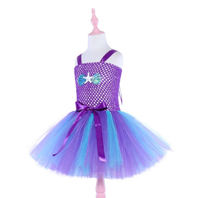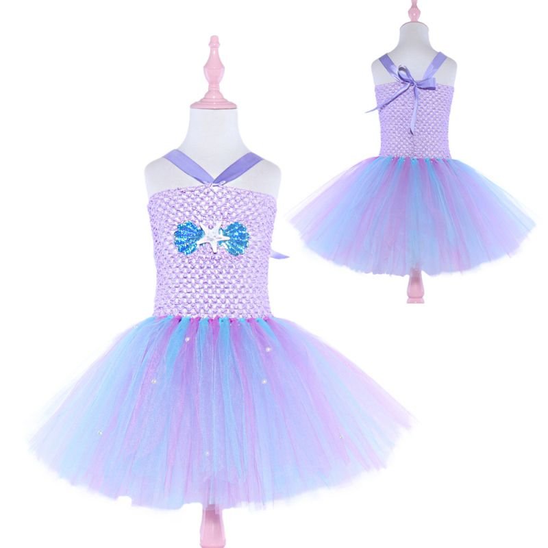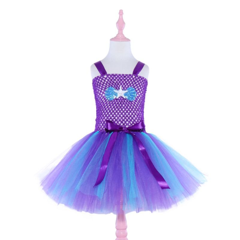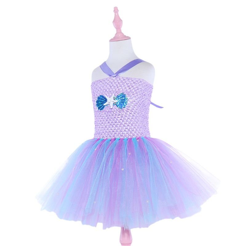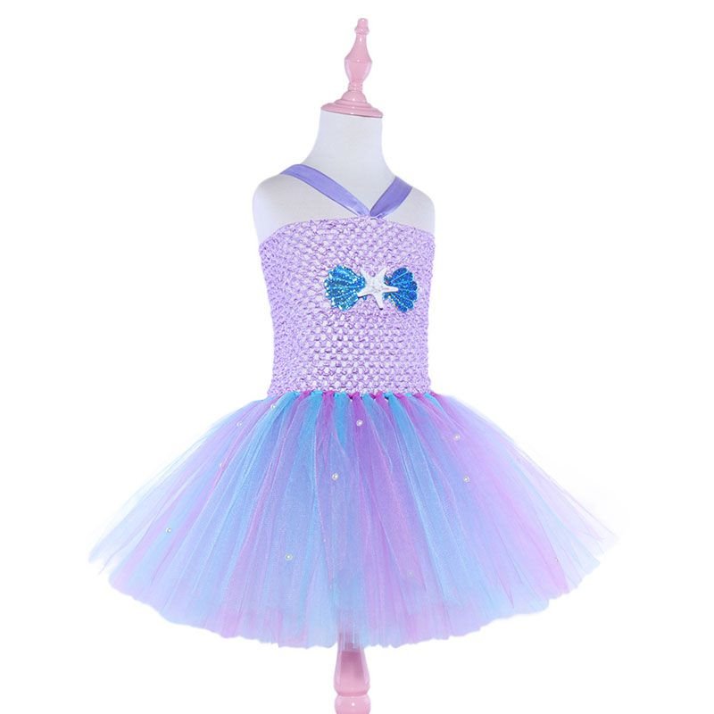 Girls Shiny Starfish Shell Decor Lace-up Mesh Tutu Dresses