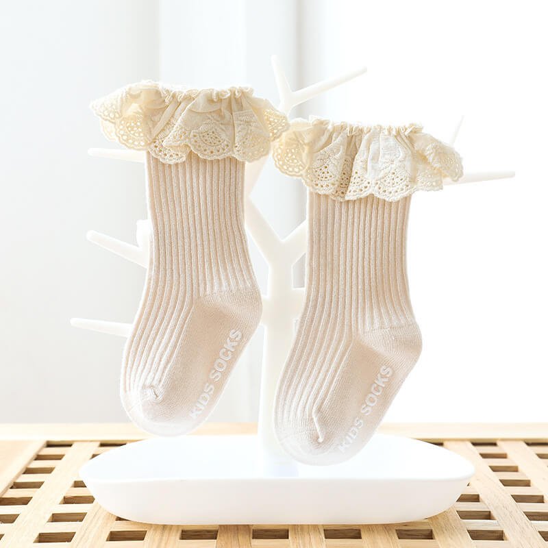 Girls Simple Lace Trim Non-slip Mid-tube Socks