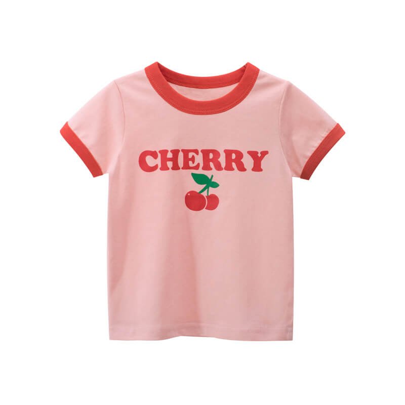 Girls Simple Letter Fruit Print T-Shirt