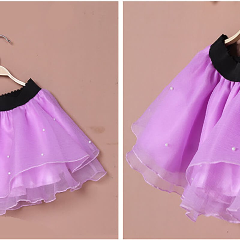 Girls Simple Pearl Decor Mesh Design Fluffy Skirt