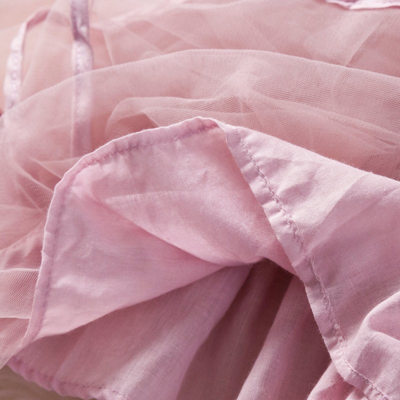 Girls Simple Round Neck Sleeveless Flower Decor Gauze Lace Princess Dress